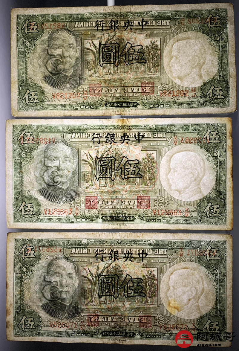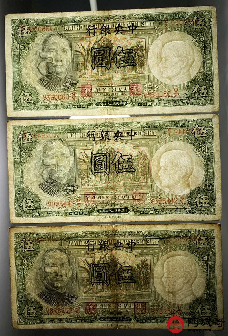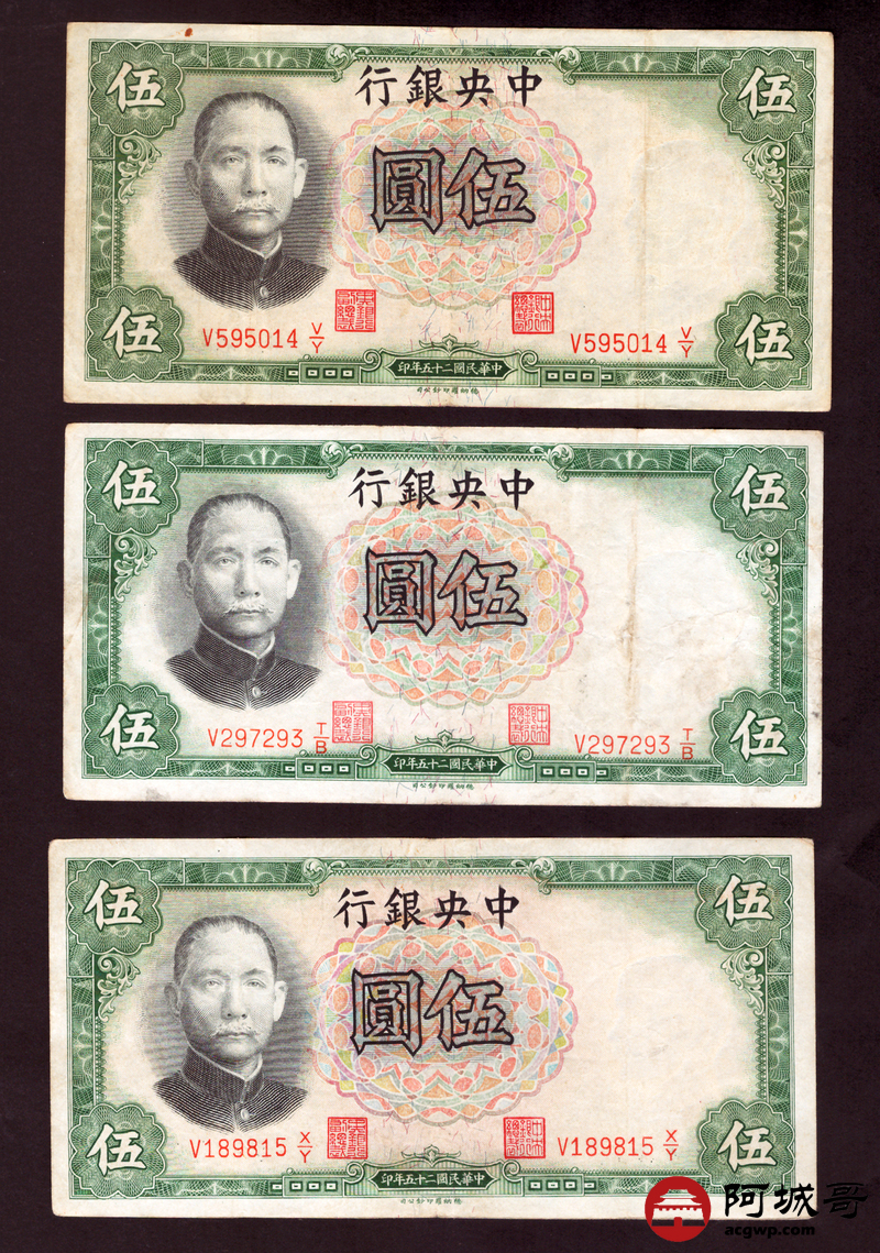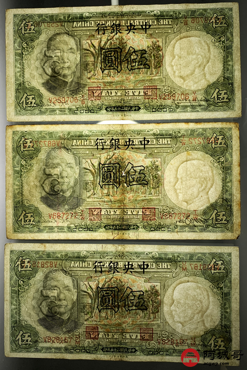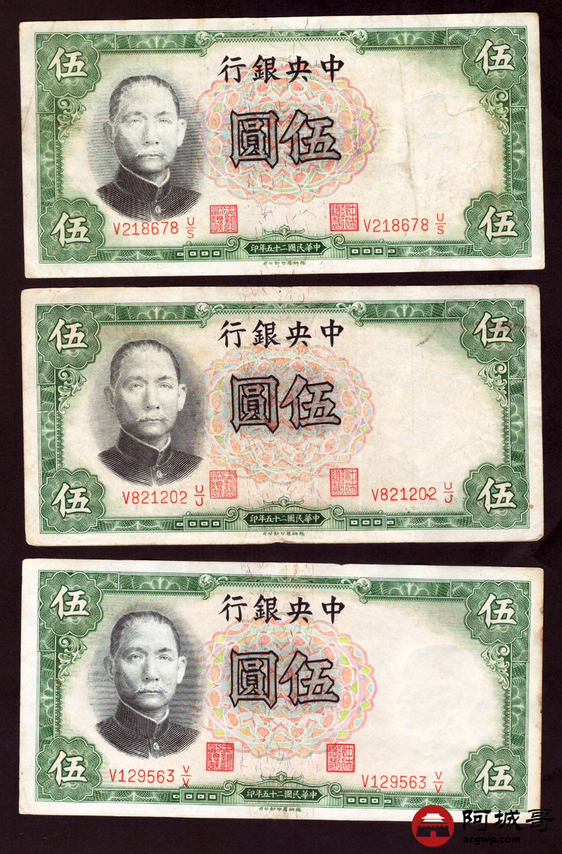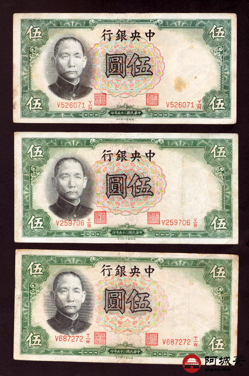 Lot:82 民国二十五年 中央银行 伍圆 13张 69至7成新