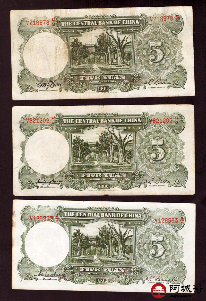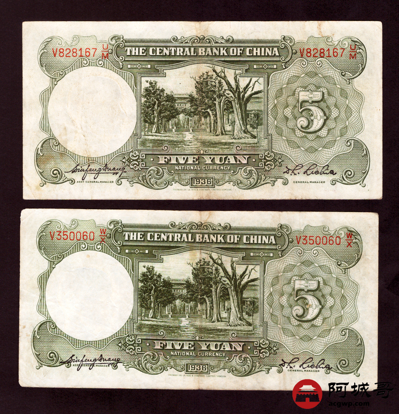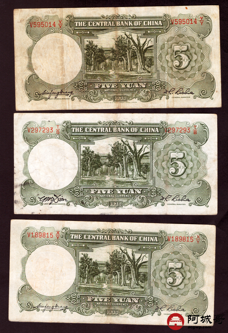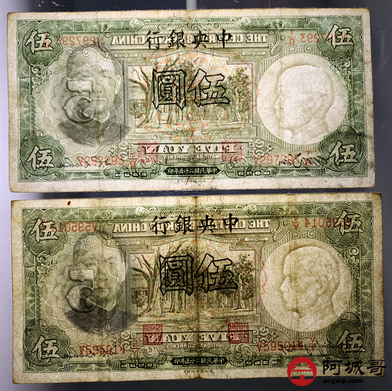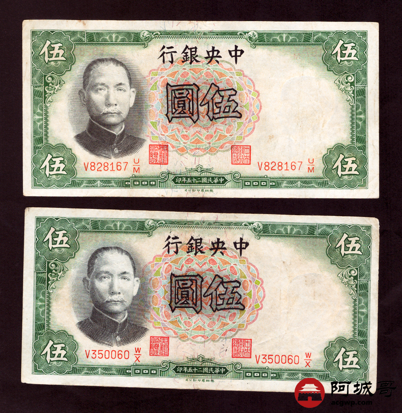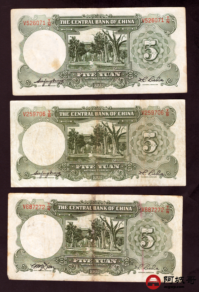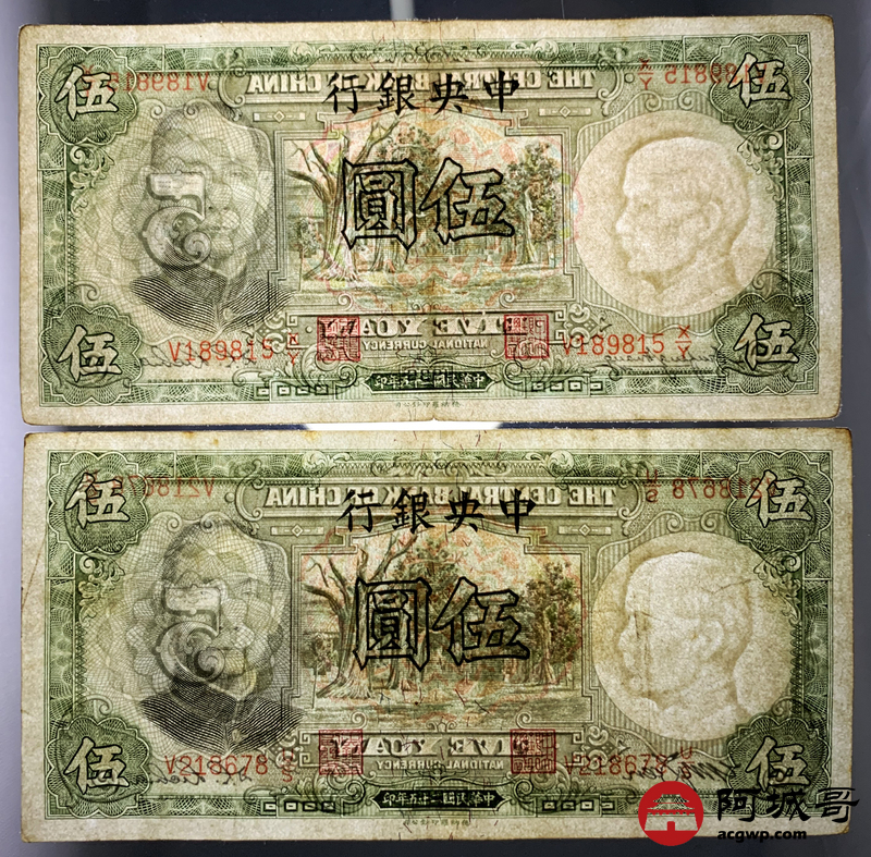 Lot:82 民国二十五年 中央银行 伍圆 13张 69至7成新
