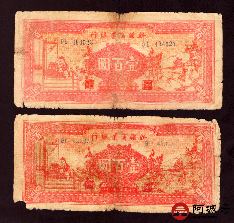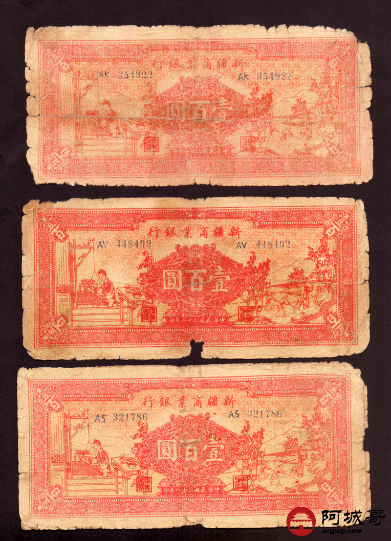 Lot:85 民国二十八年 新疆商业银行 壹佰圆 10张 56成新