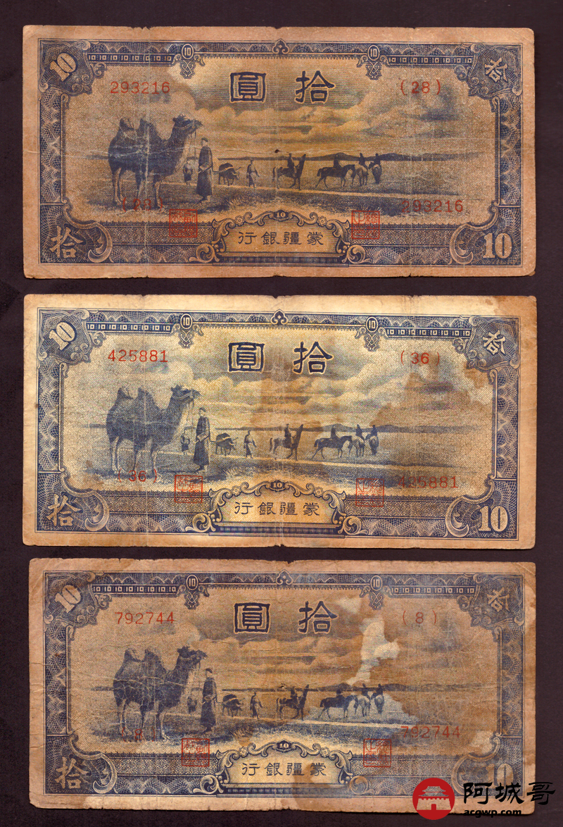 Lot:83 蒙疆银行 拾圆 6张 67至68成新