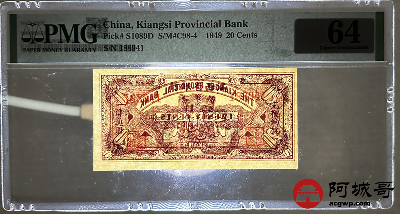 Lot:94 民国38年 江西省银行 贰角 PMG 64