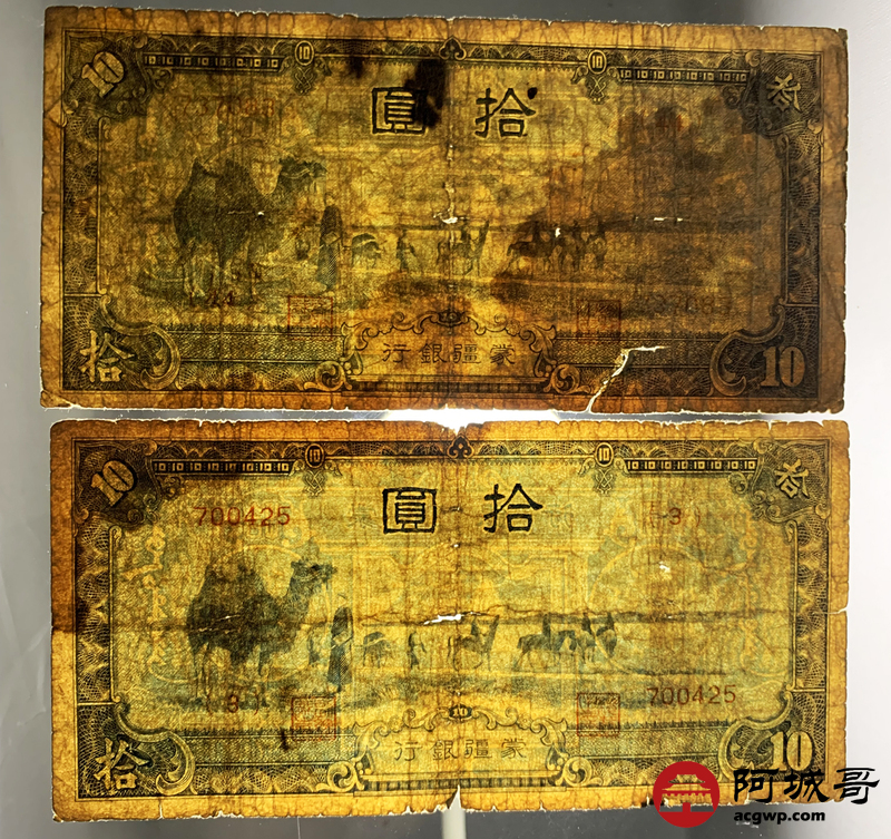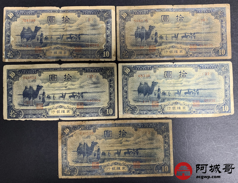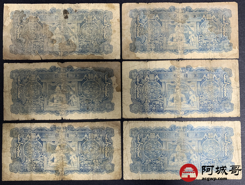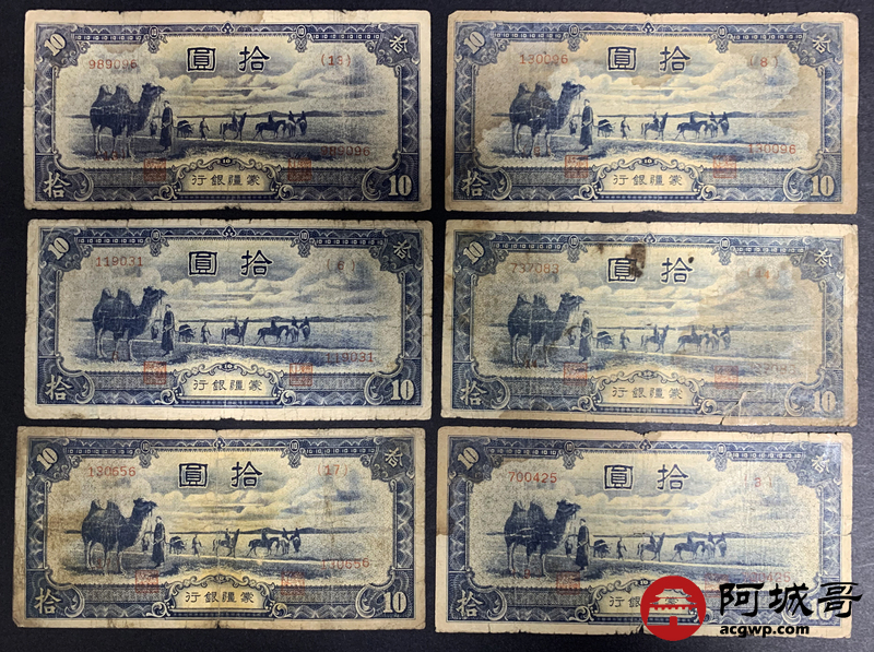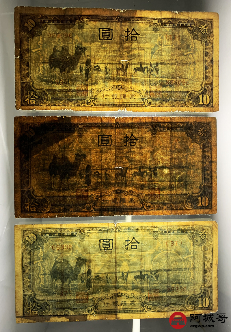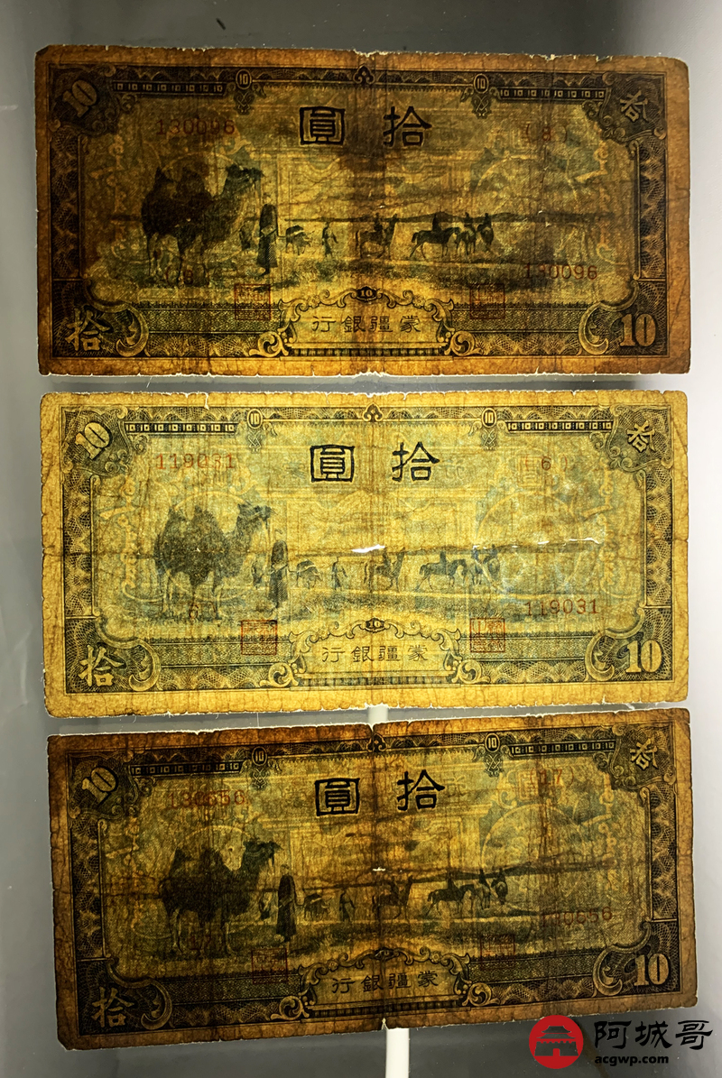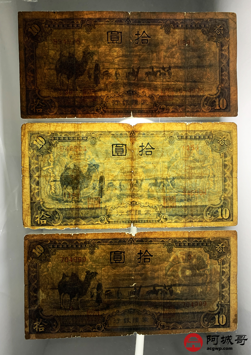 Lot:16 蒙疆银行 5位号6位号拾圆 11张 65至67成新 两张修补