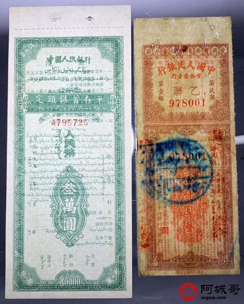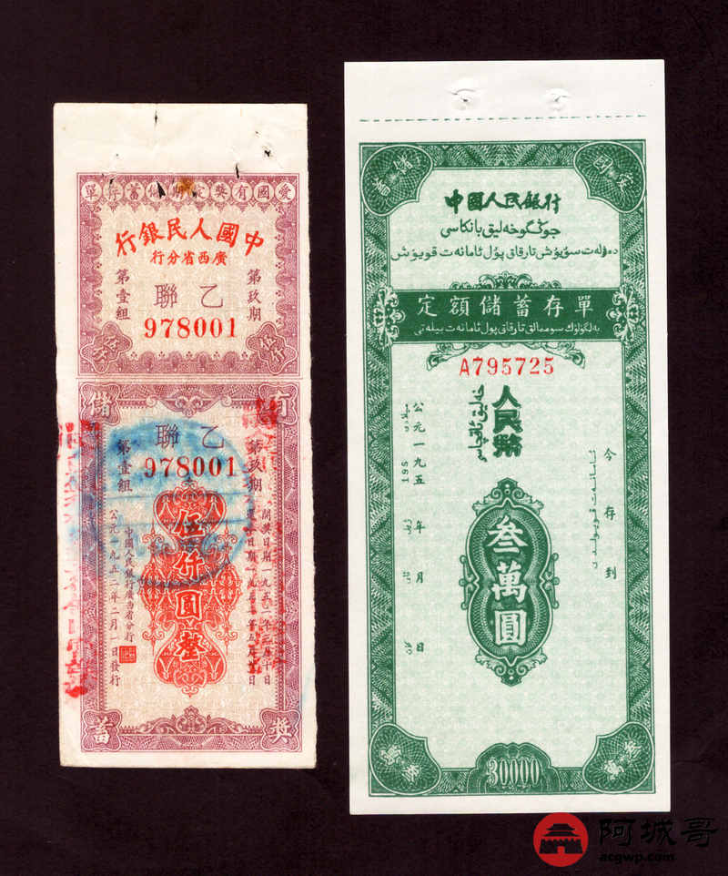 Lot:67 中国人民银行 广西省分行 伍仟元 叁万元整 2张