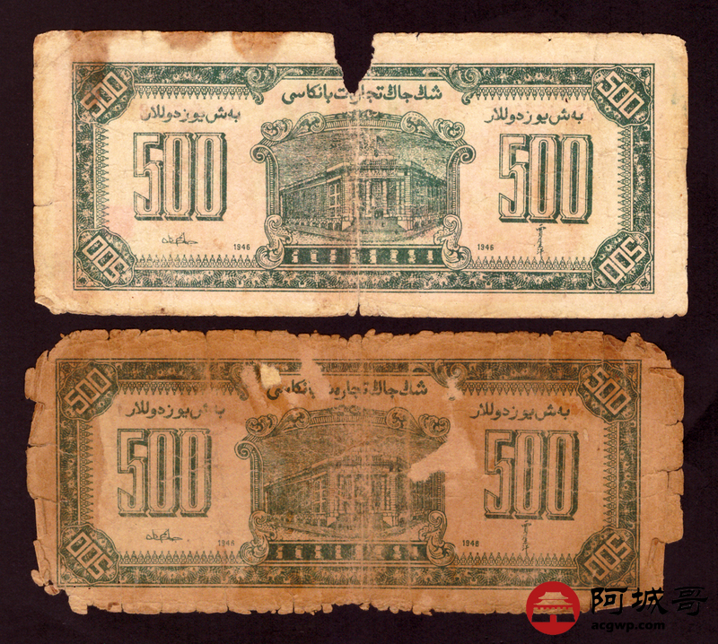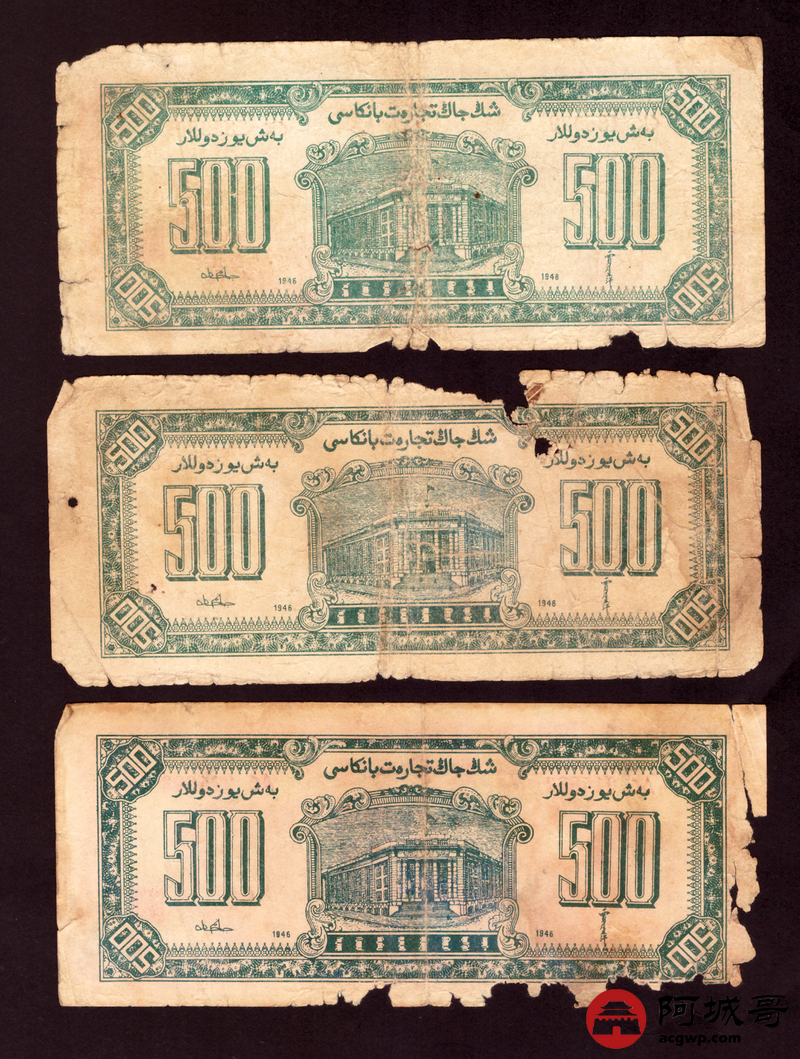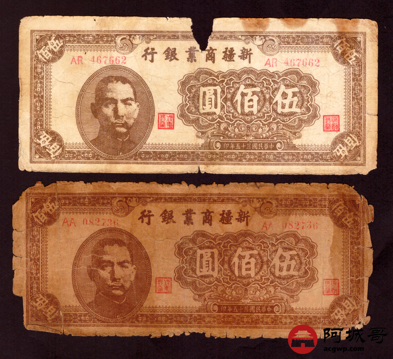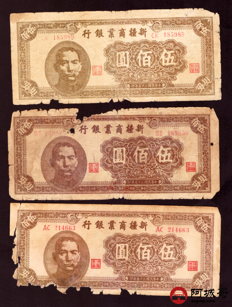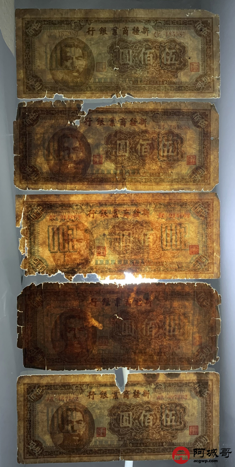 Lot:4 民国三十五年 新疆商业银行 伍佰圆 5张 5至55成新