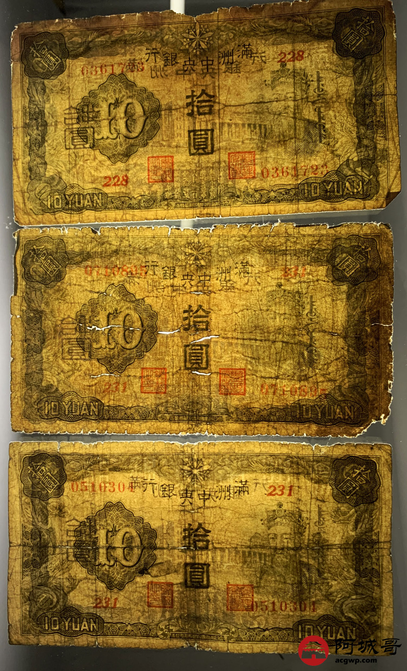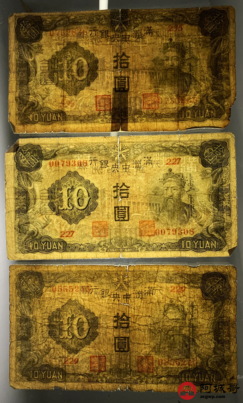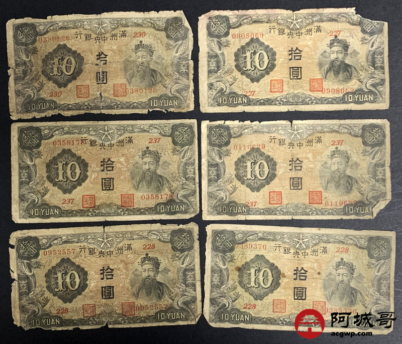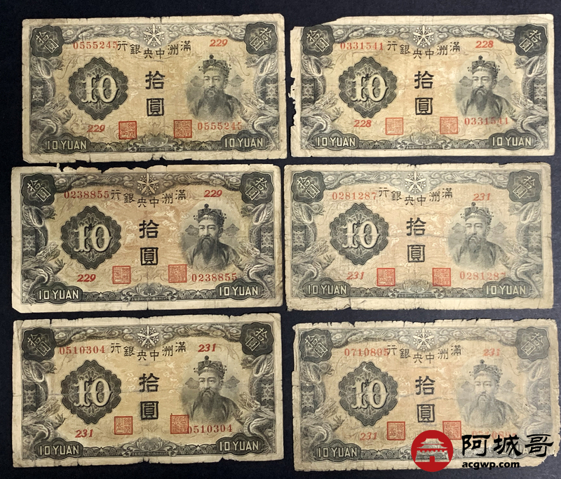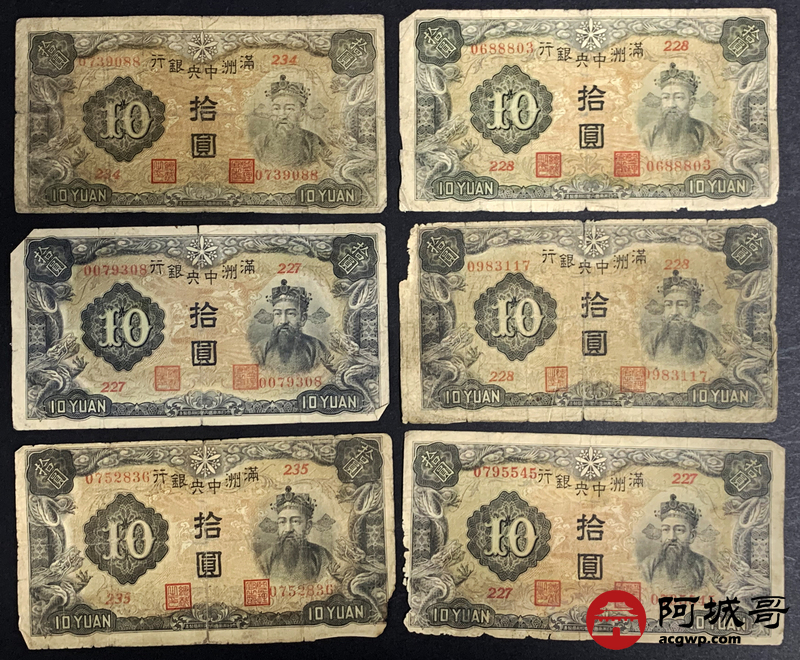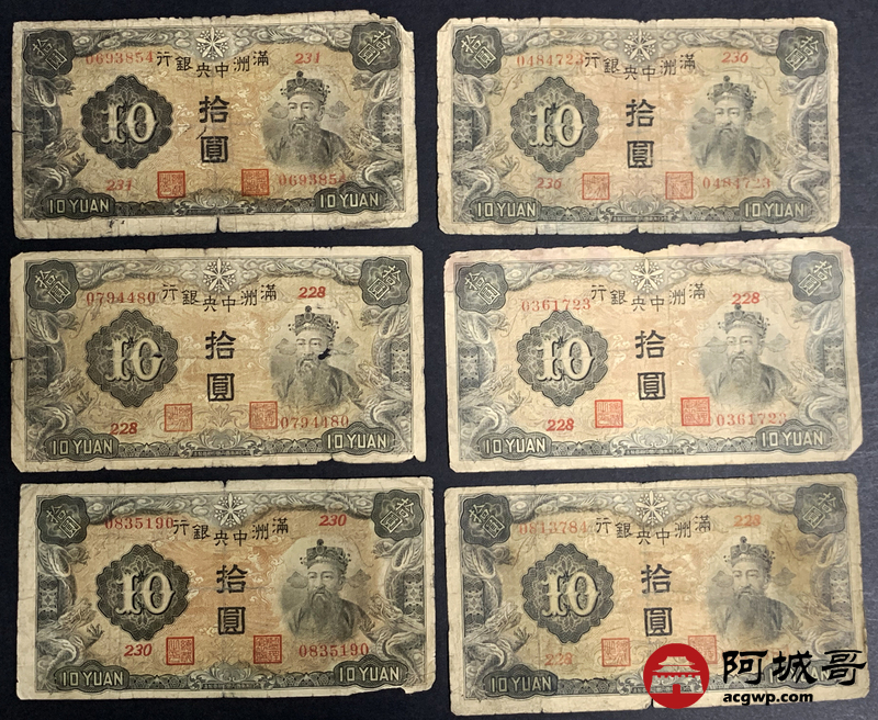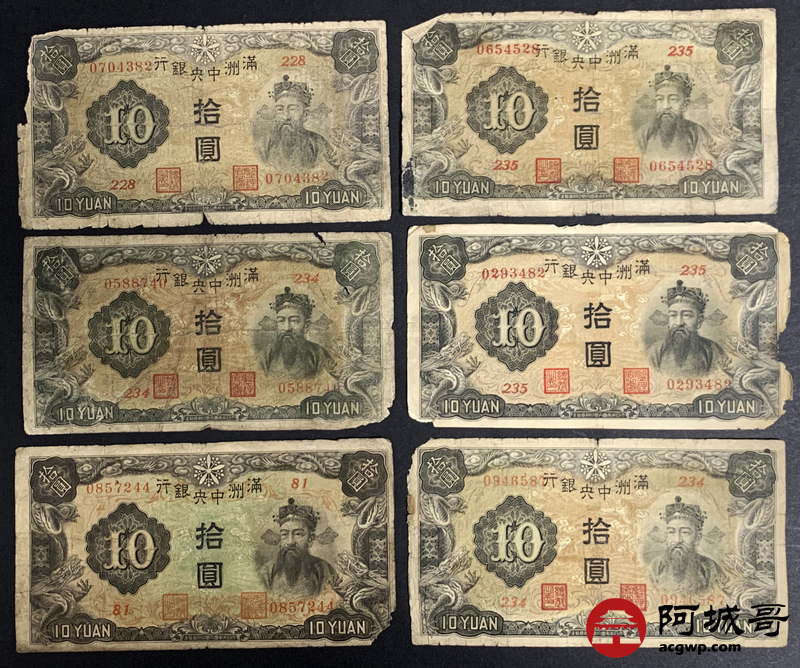 Lot:6 满洲中央银行 拾圆30张 5至56成新