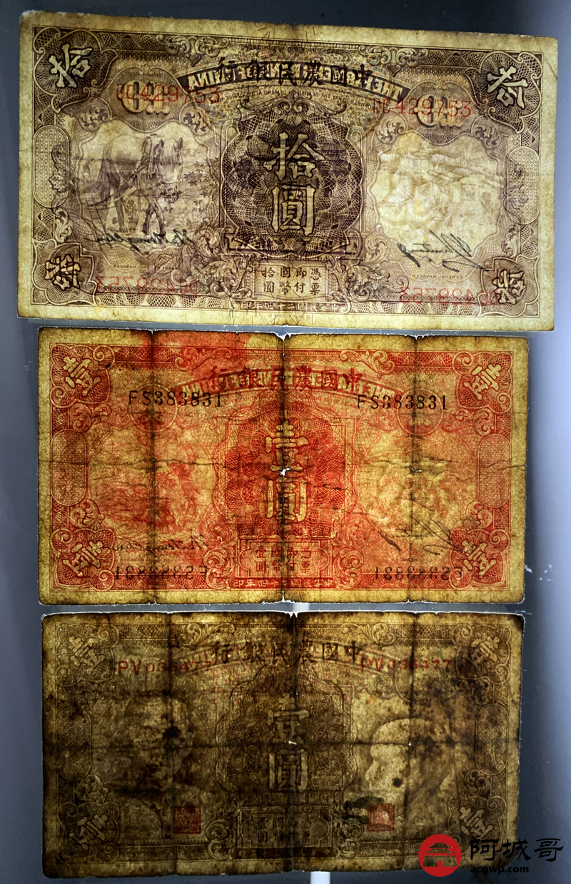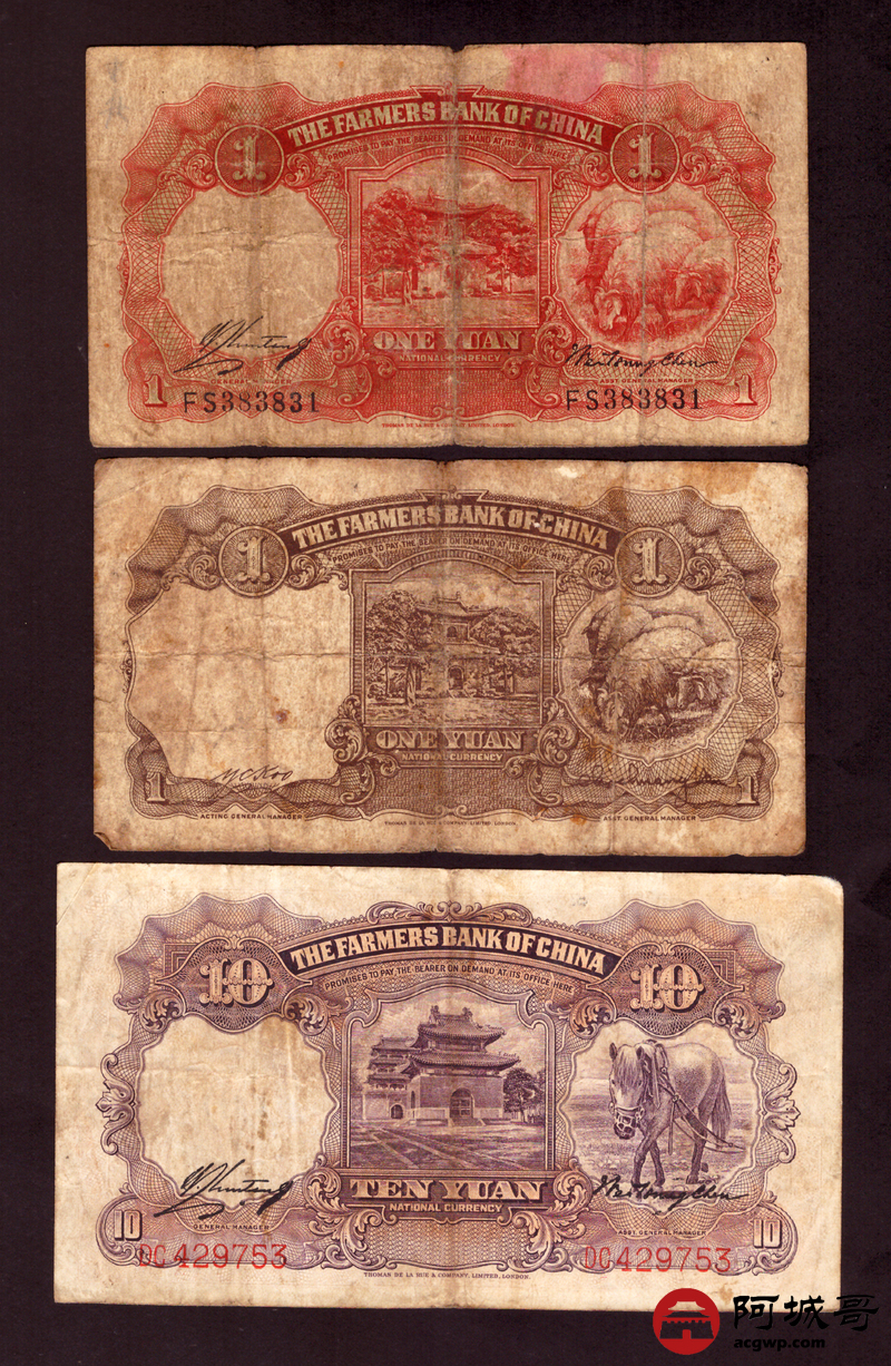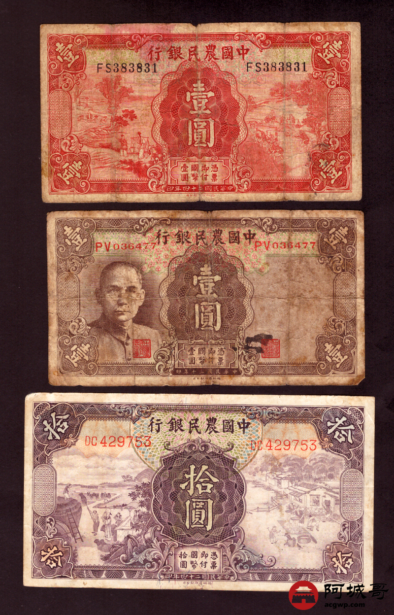 Lot:31 中国农民银行 壹圆、拾圆 3张 67至69成新