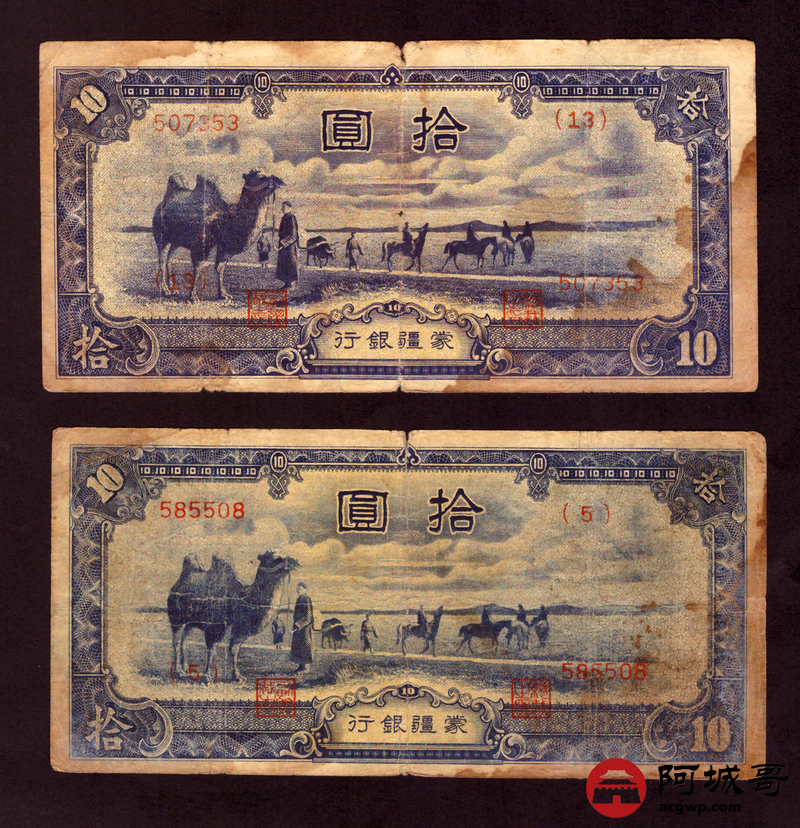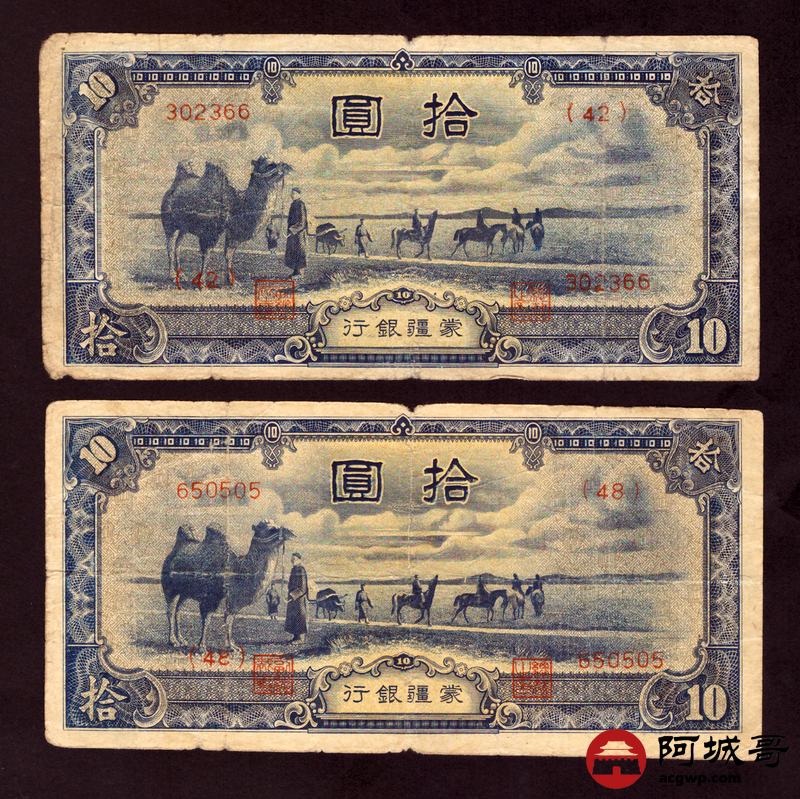 Lot:29 蒙疆银行 拾圆 4张 67至68成新
