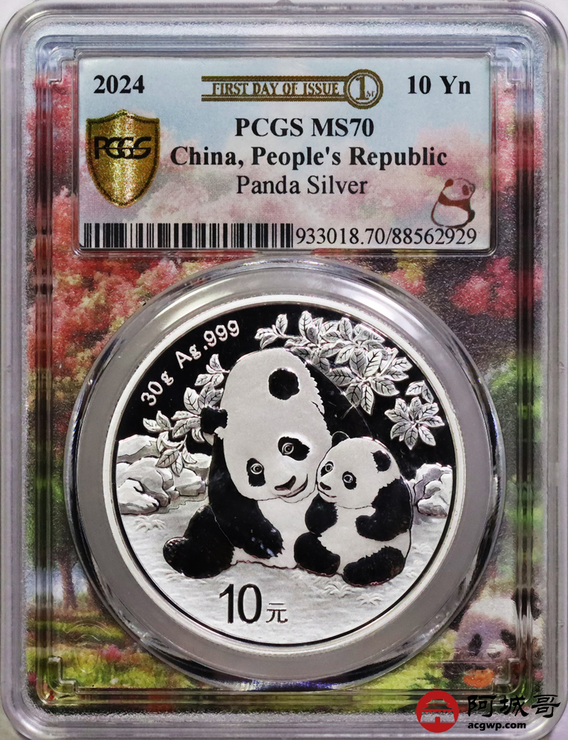 Lot:34 2024年熊猫10元银币PCGS MS69亲情盛开 首日标