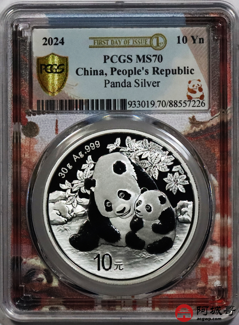Lot:32 2024年熊猫10元银币 PCGS MS70火锅盛唐 首日标