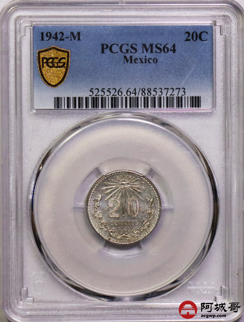 Lot:46 1942M墨西哥鹰洋20C PCGS MS64