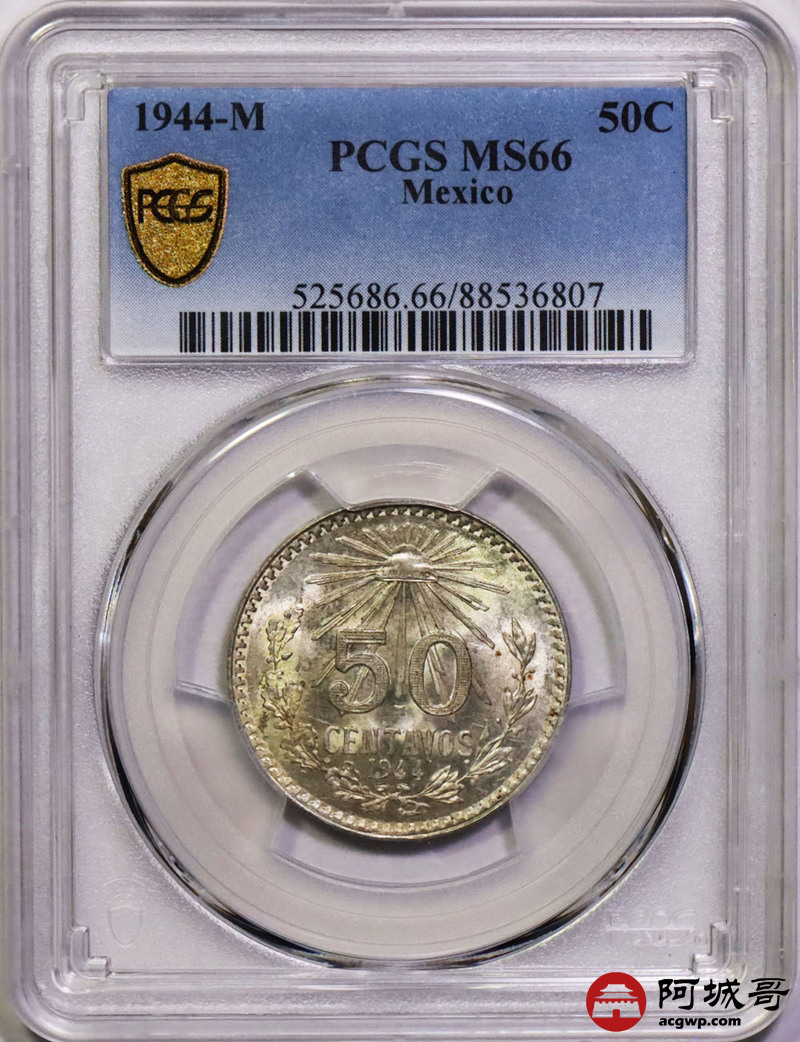 Lot:41 1944M墨西哥鹰洋50C PCGS MS66