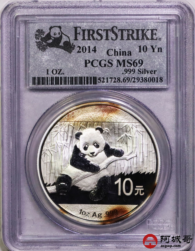 Lot:38 2014年熊猫1盎司10元银币 PCGS MS69初打标