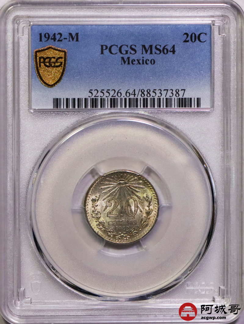 Lot:47 1942M墨西哥鹰洋20C PCGS MS64
