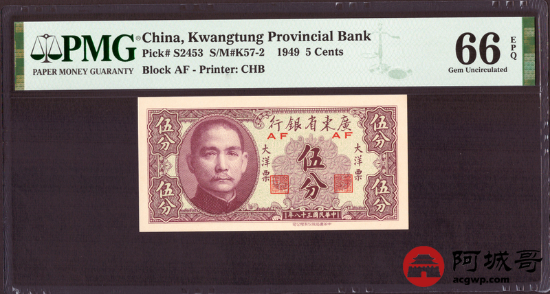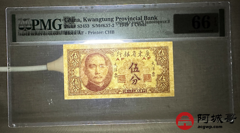 Lot:25 民国38年 广东省银行 伍分 PMG 66EPQ