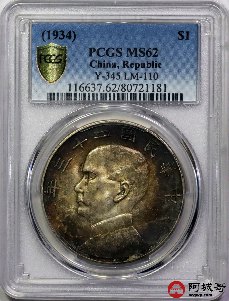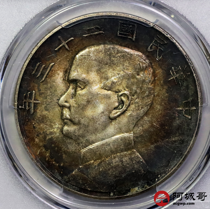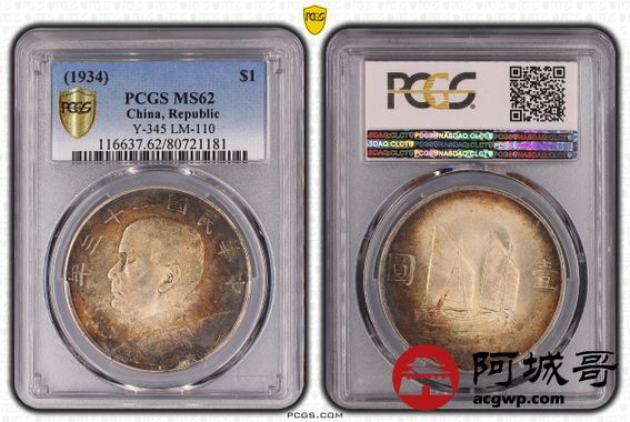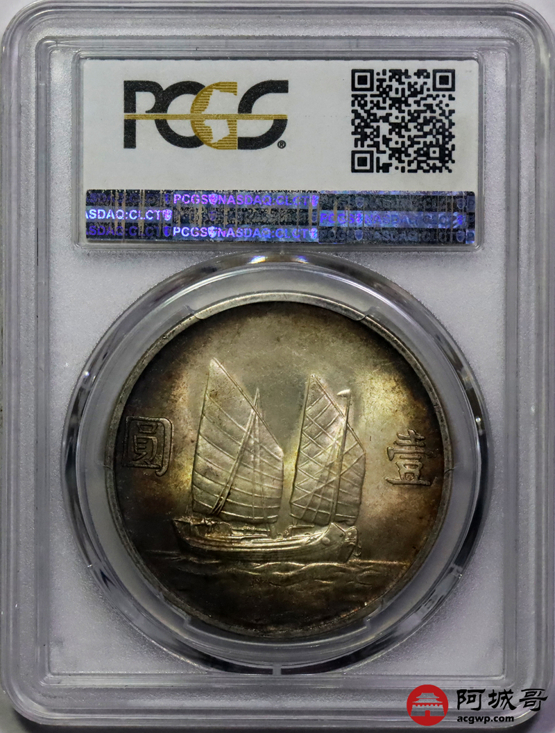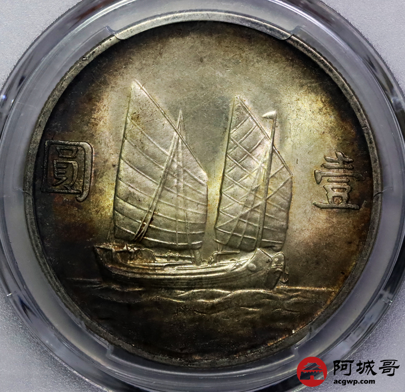 Lot:14 双面酱彩老包浆 二十三年船洋 PCGS MS62