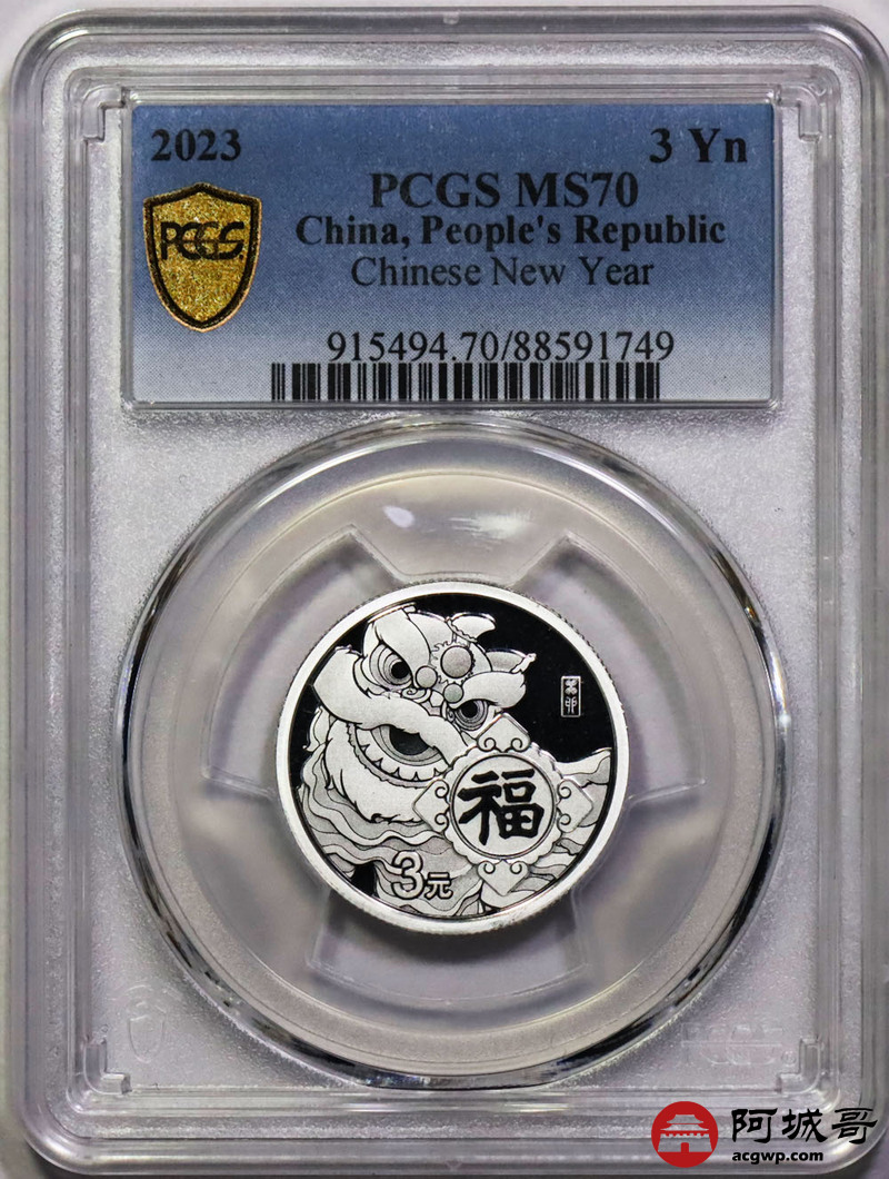 Lot:36 2023年福字3元银币 PCGS MS70