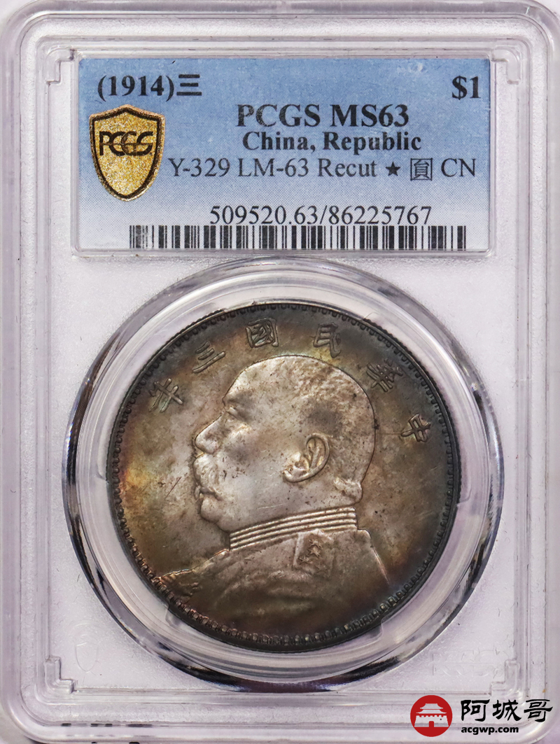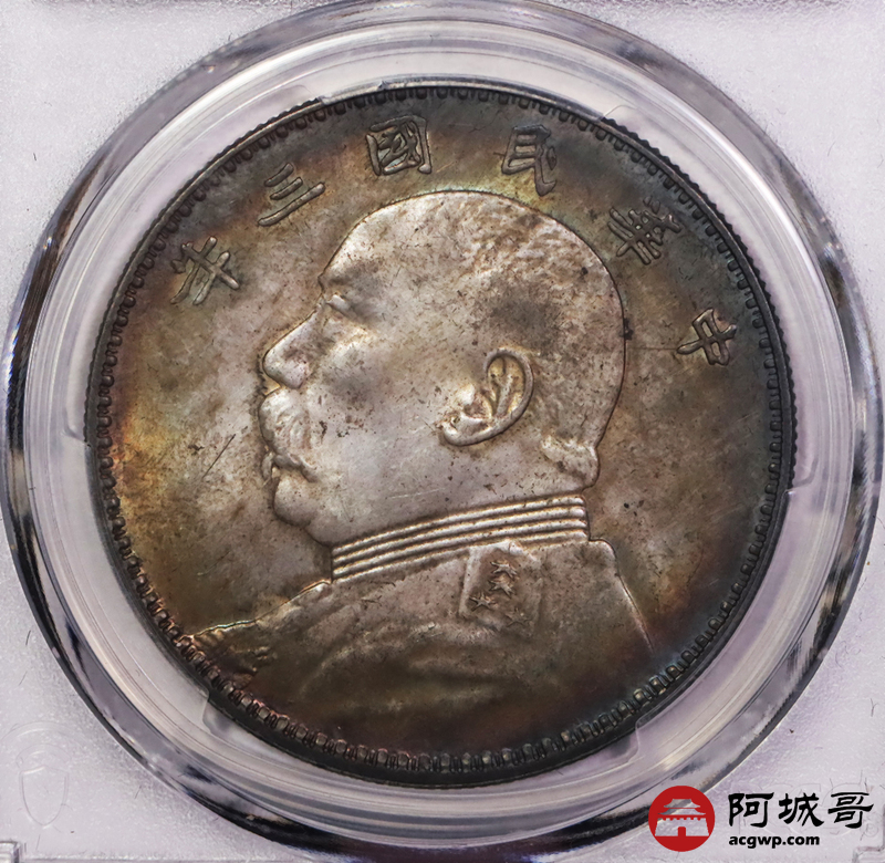 Lot:6086 1914民国三年袁世凯像壹圆银币一枚,传世老五彩,入骨卷尾黑美人,味道一流 PCGS MS63评级编号:86225767