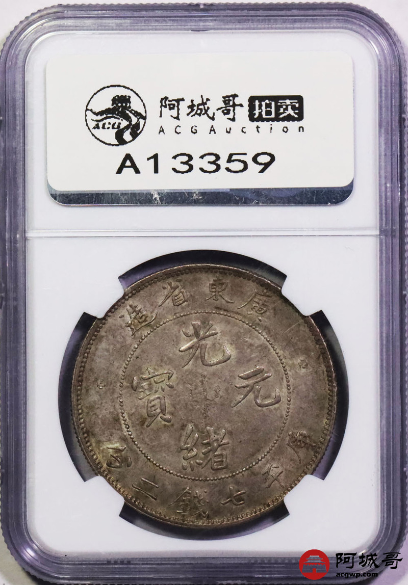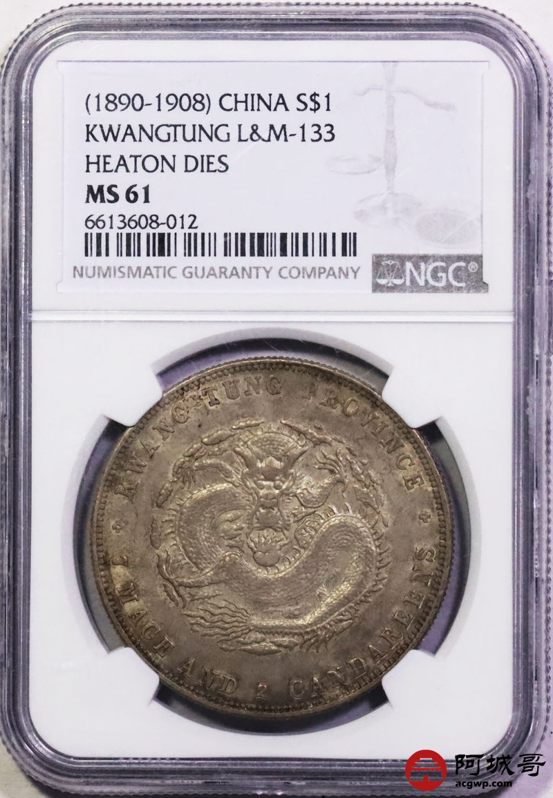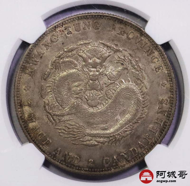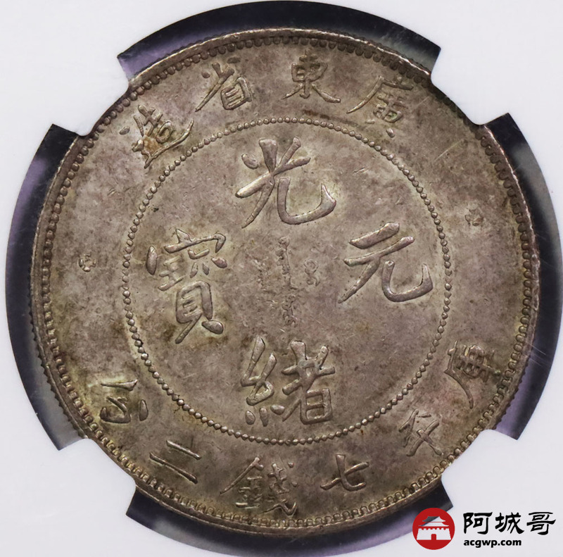 Lot:6221 1890-1908广东省造光绪元宝库平七钱二分银币一枚,喜敦版,镜面淡彩,原味底板 NGC MS61