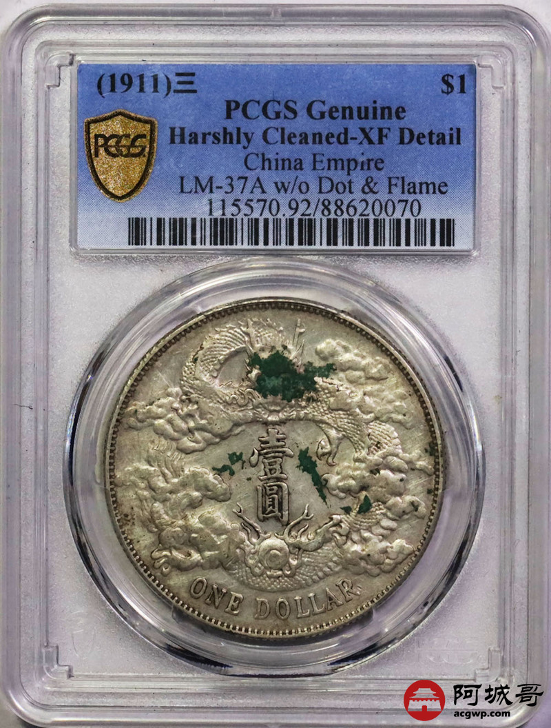 Lot:6033 1911宣统三年大清壹圆银币一枚,原味 PCGS XF92评级编号:88620070