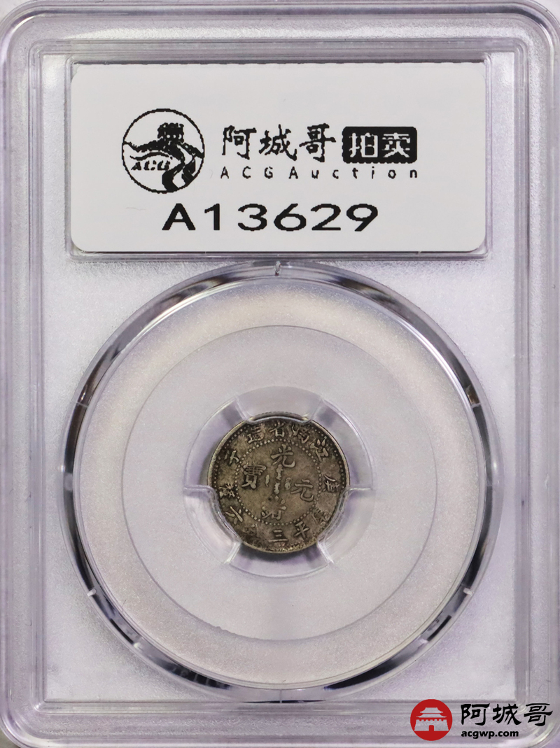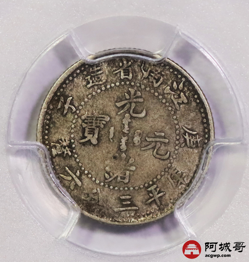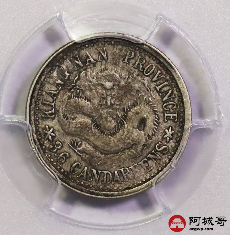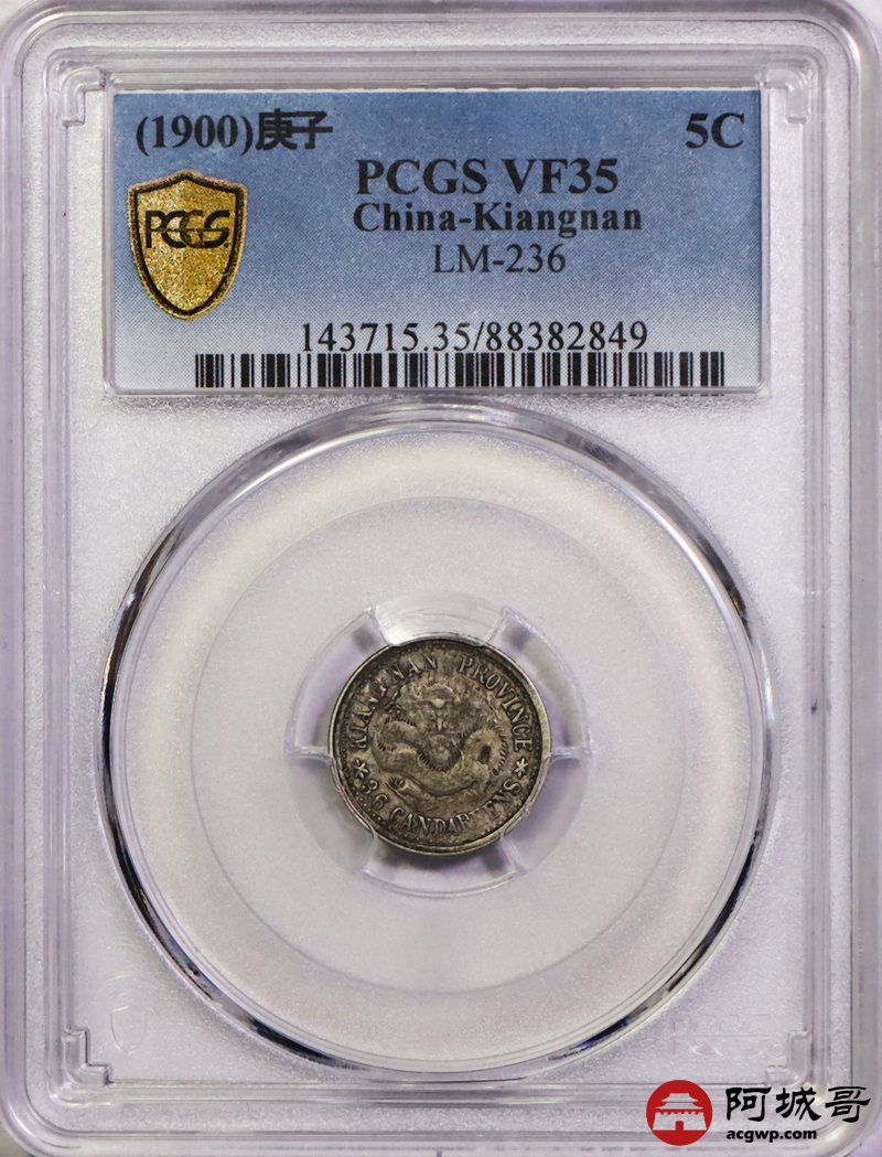 Lot:6273 1900庚子年江南省造光绪元宝库平三分六厘银币一枚,原味 PCGS VF35评级编号:88382849