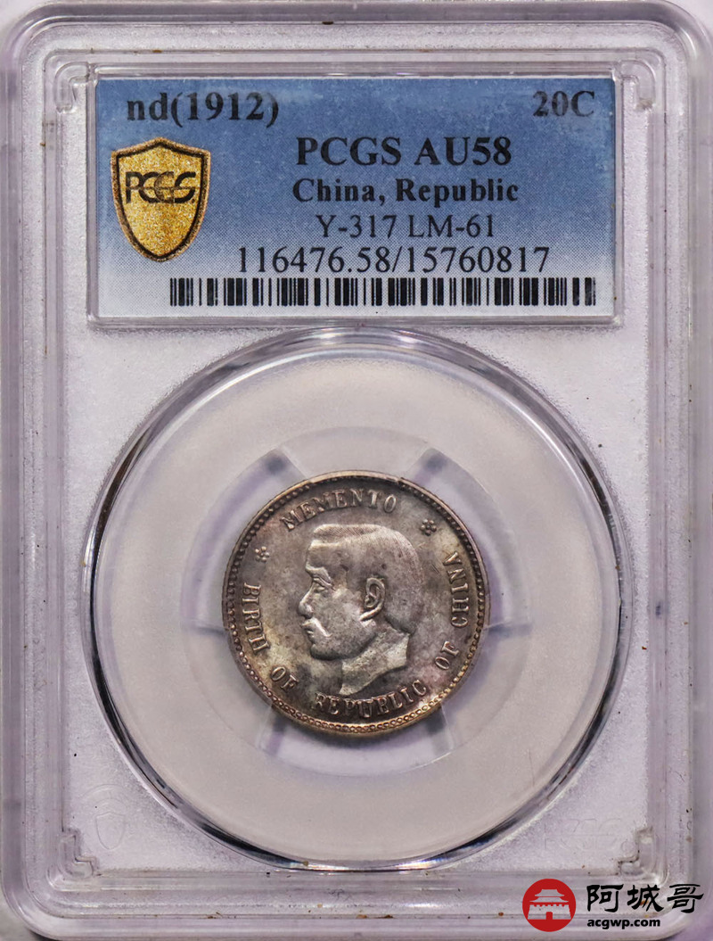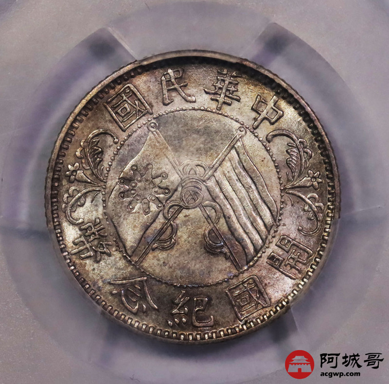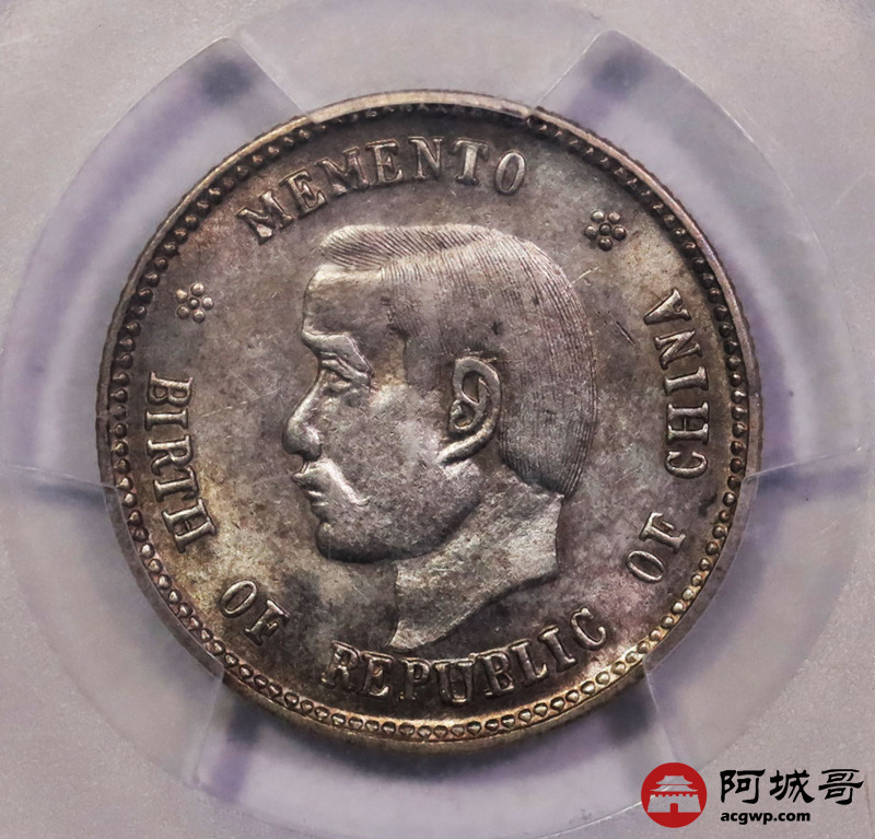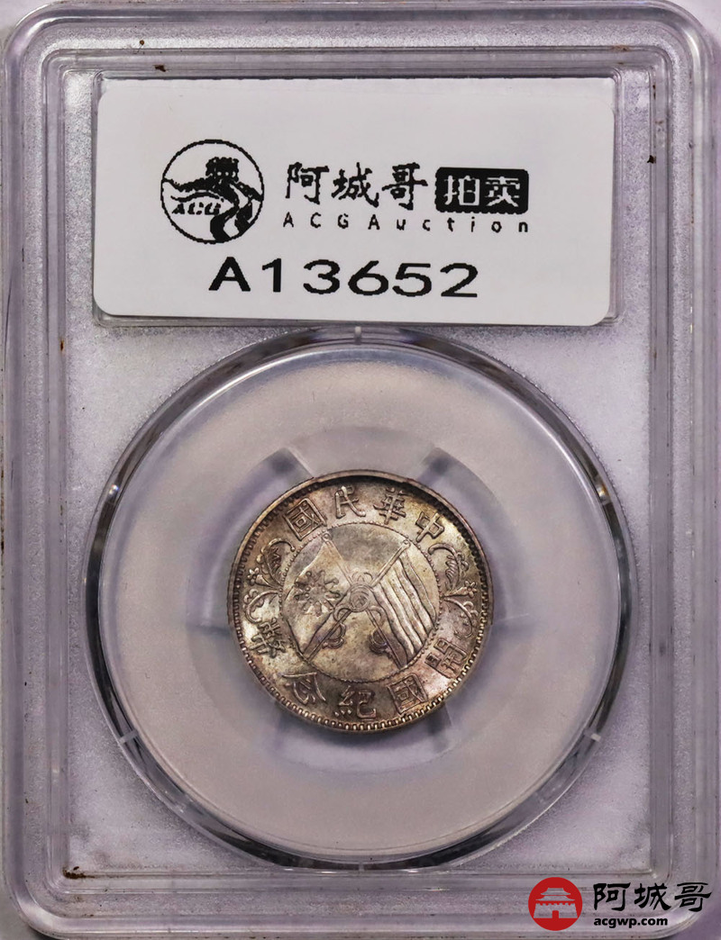 Lot:6141 1912年孙中山像开国纪念贰角银币,粉彩底板,铸打清晰 PCGS AU58