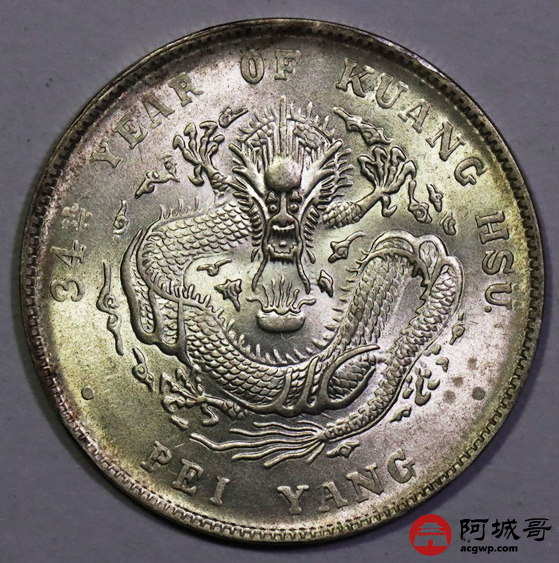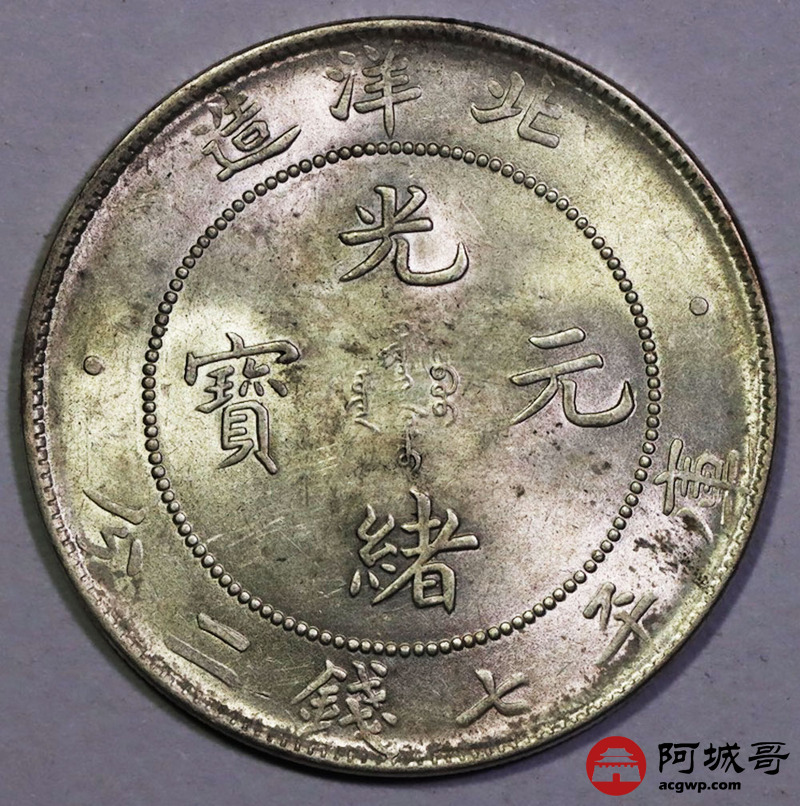 Lot:6082 1908光绪三十四年北洋造光绪元宝库平七钱二分银币一枚,原光状态