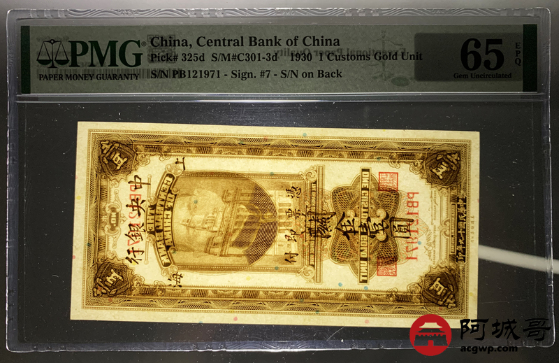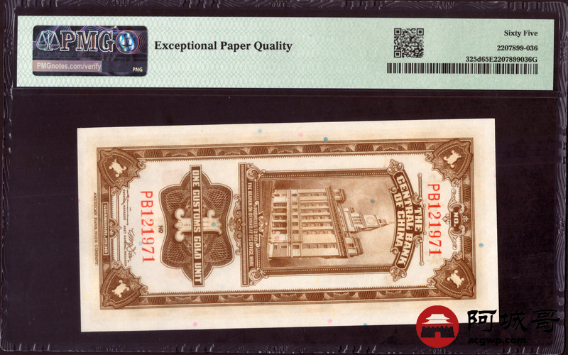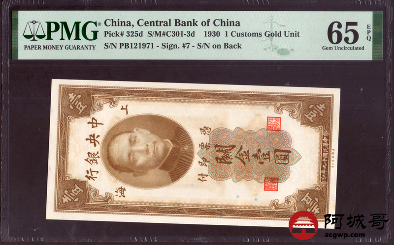 Lot:35 民国十九年 关金壹圆 上海地名 PMG 65EPQ
