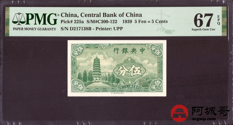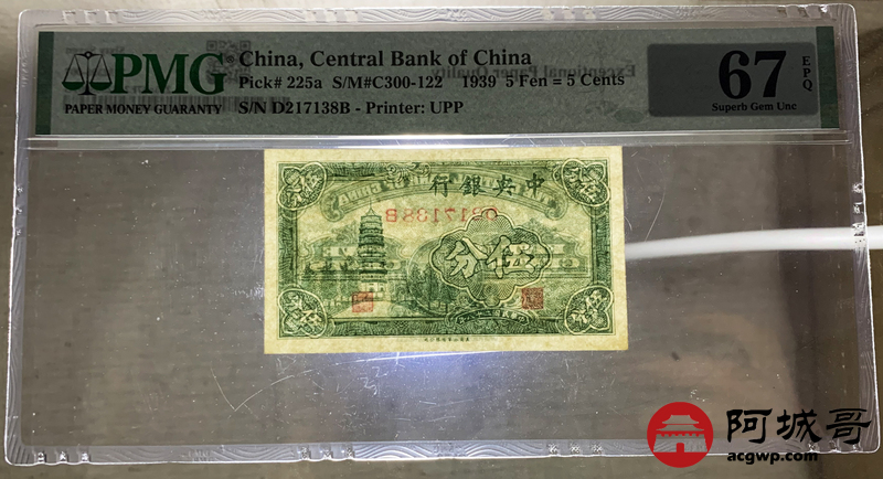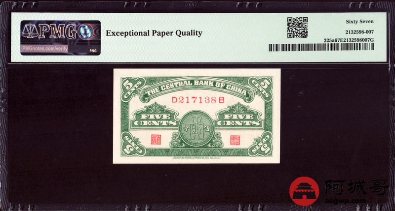 Lot:56 民国二十八年 中央银行 伍分 PMG 67EPQ