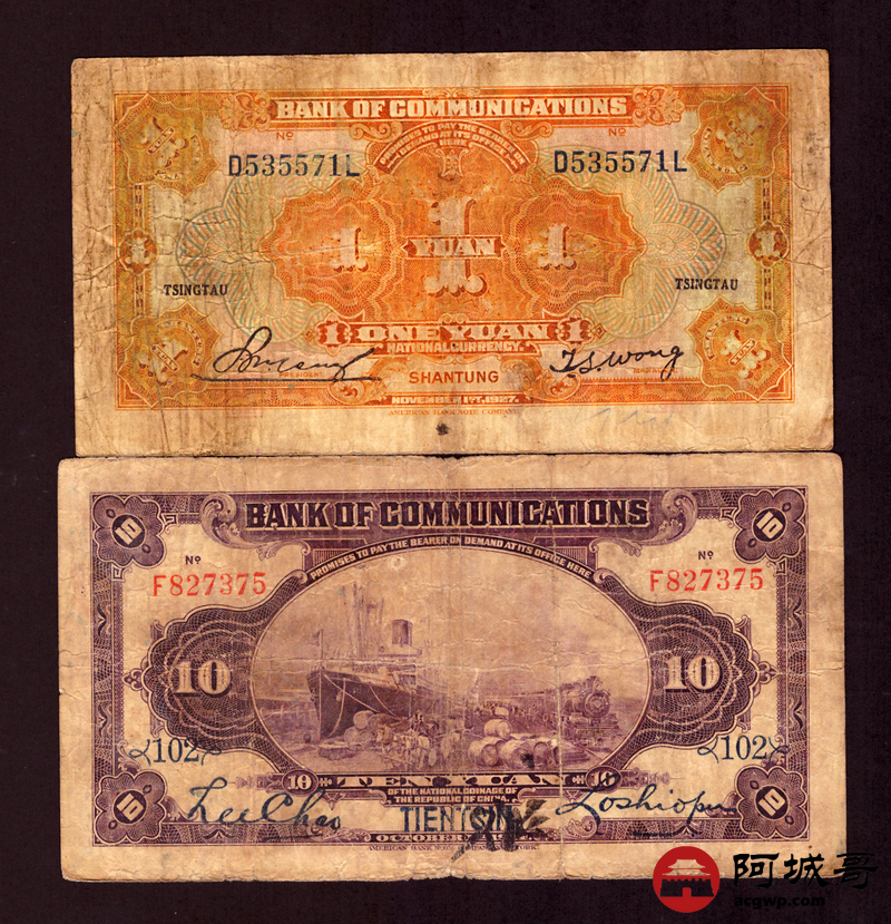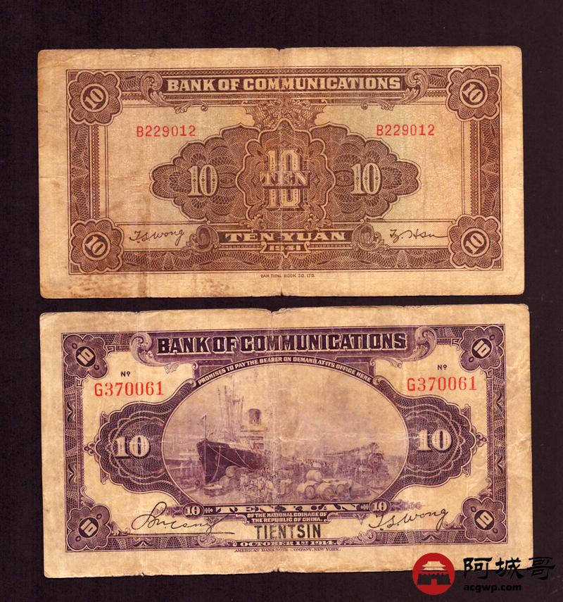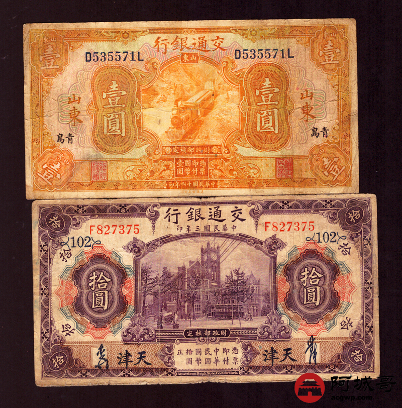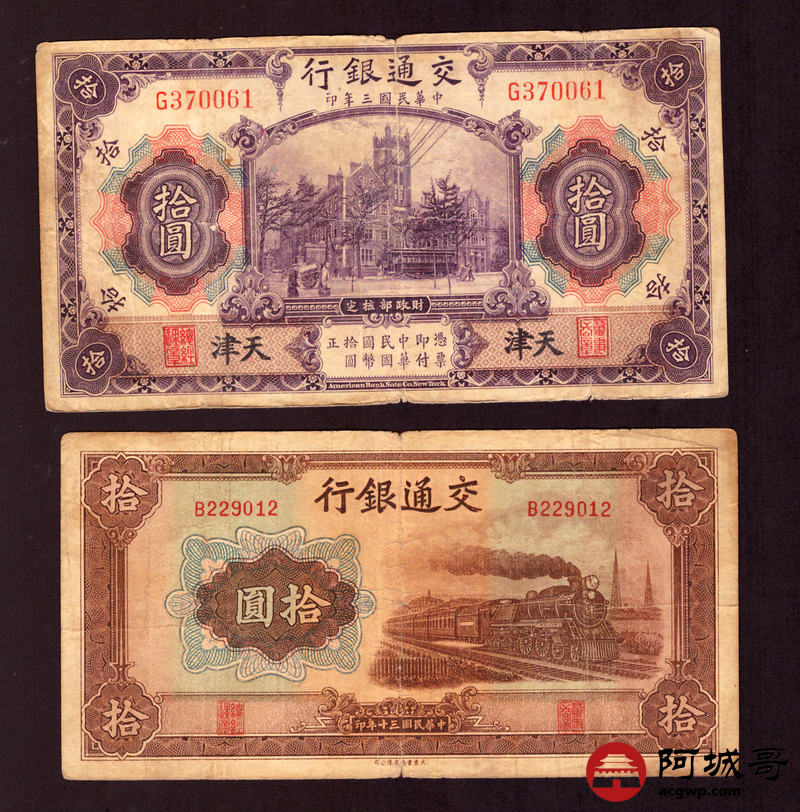 Lot:32 民国时期 交通银行 拾圆 四枚一组 67至78成新
