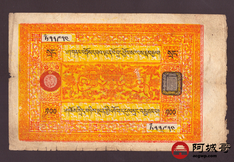 Lot:37 民国时期西藏老纸币壹佰两 原汁原味