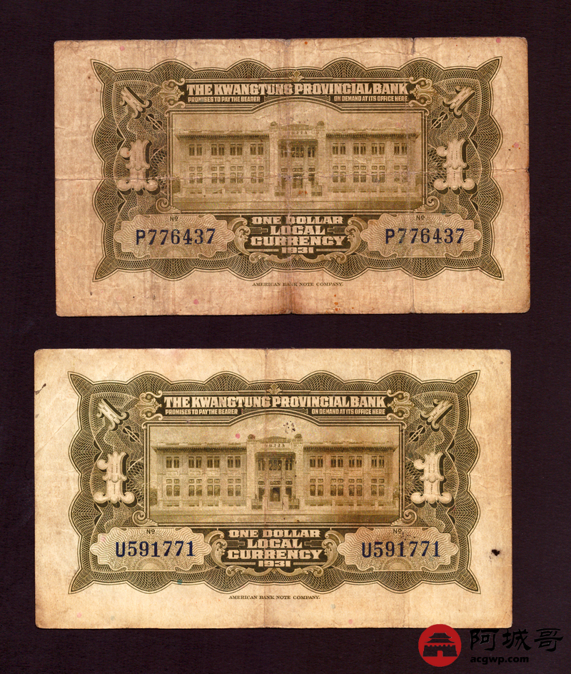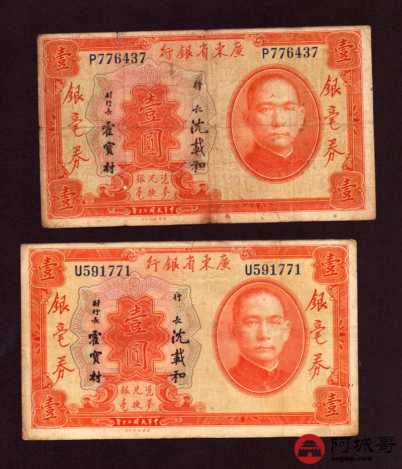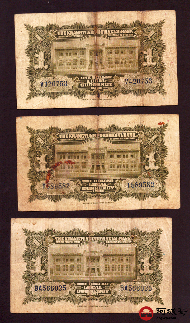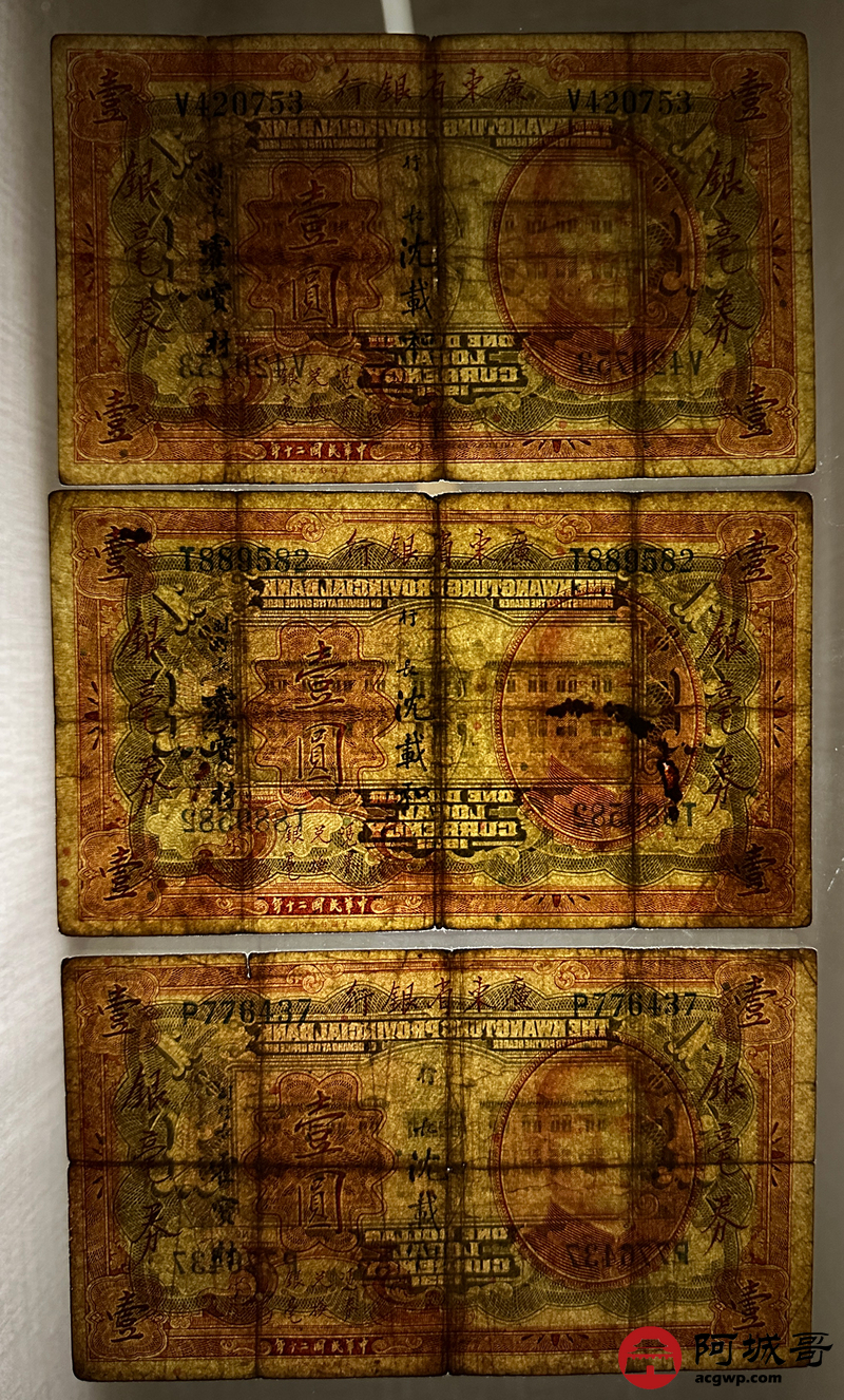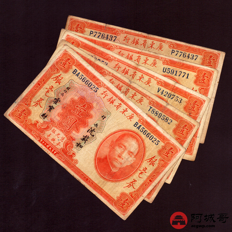 Lot:70 民国20年 广东省银行 壹圆 5张一组 69至7成新
