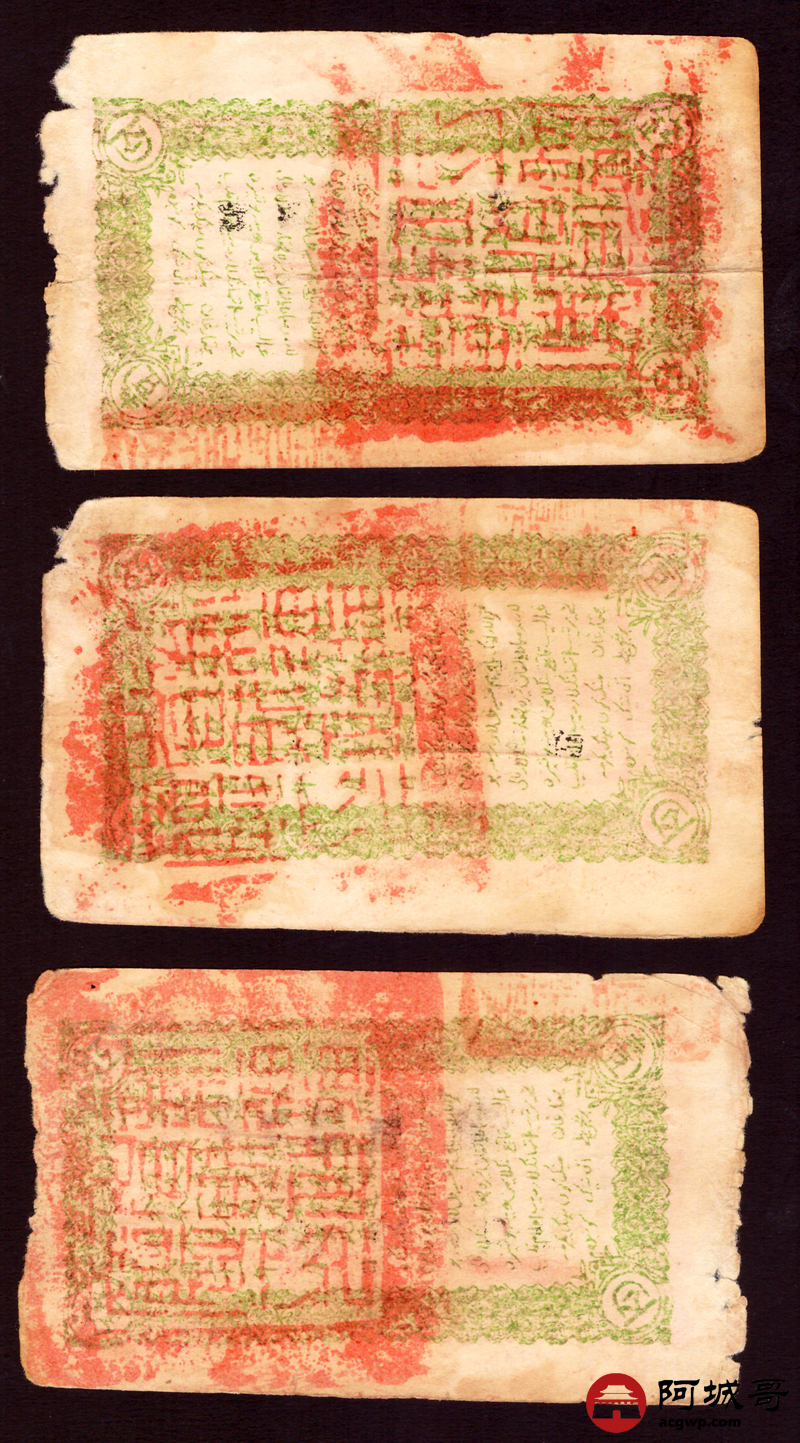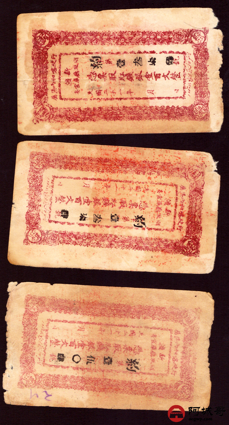 Lot:64 民国21年 新疆财政厅库官票行使喀和两区 3张一组 67至68成新