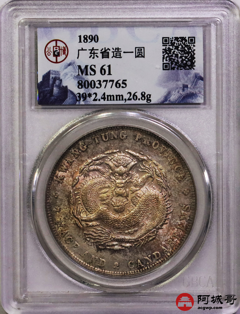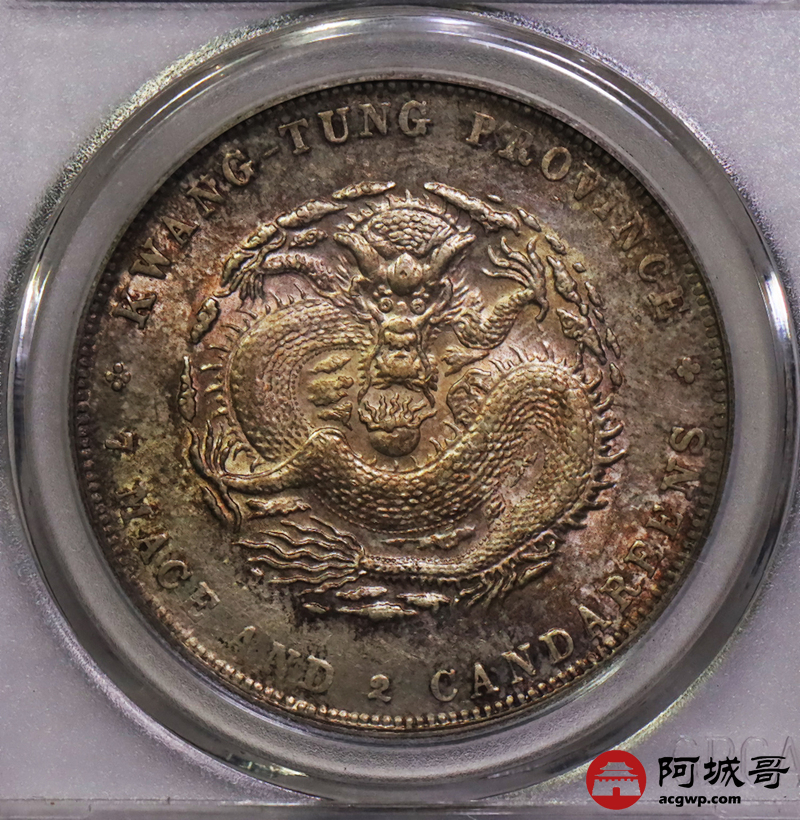 Lot:6 淡彩转光 广东光绪七钱二分 公博 MS61
