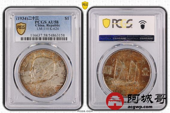 Lot:10 原味转光 金彩 二十三年船洋 PCGS AU58