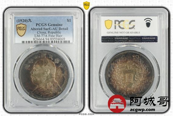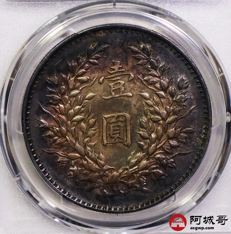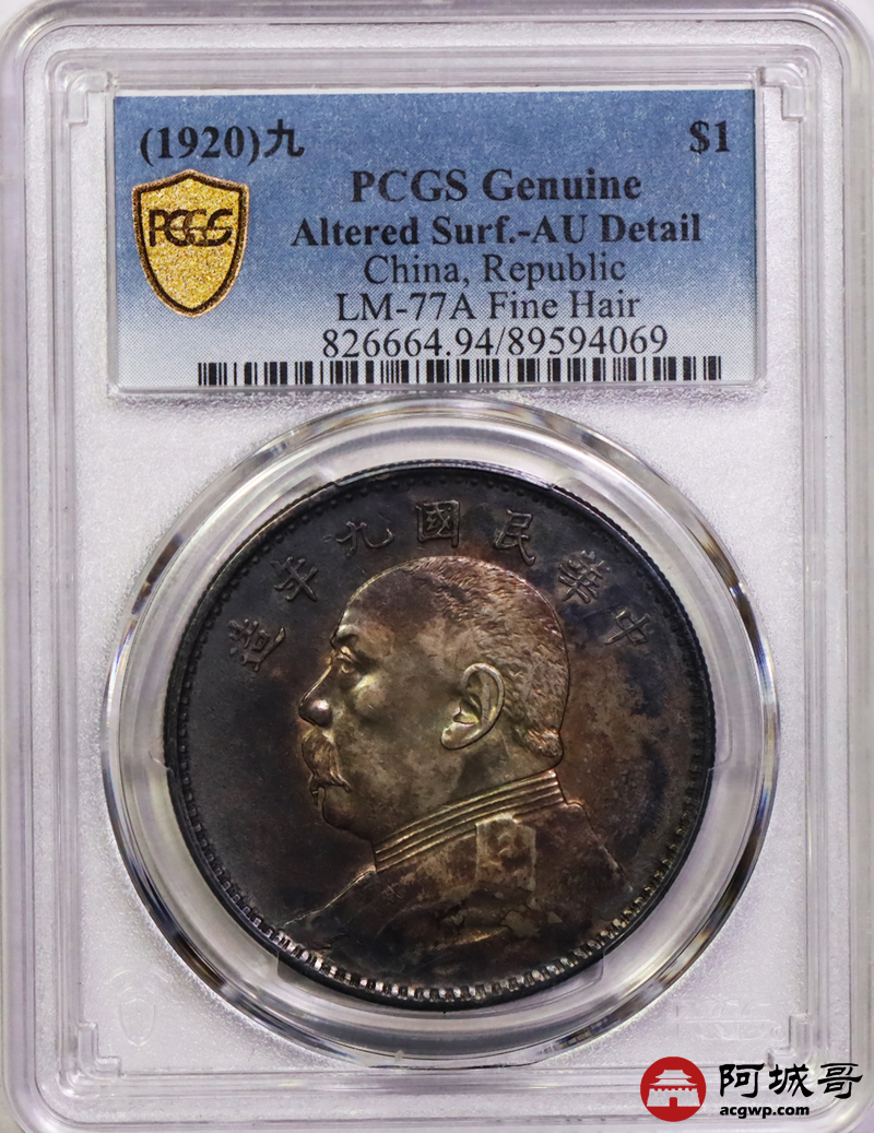 Lot:8 酱彩包浆 九年精发壹圆 PCGS AU