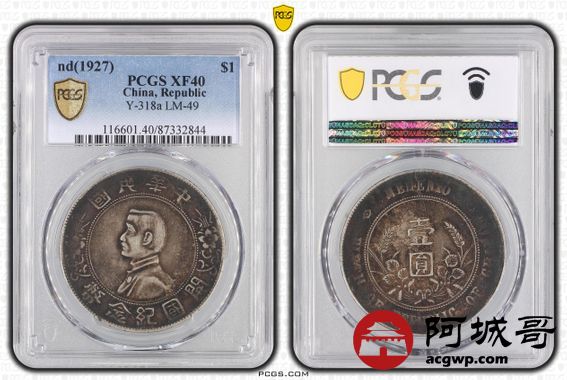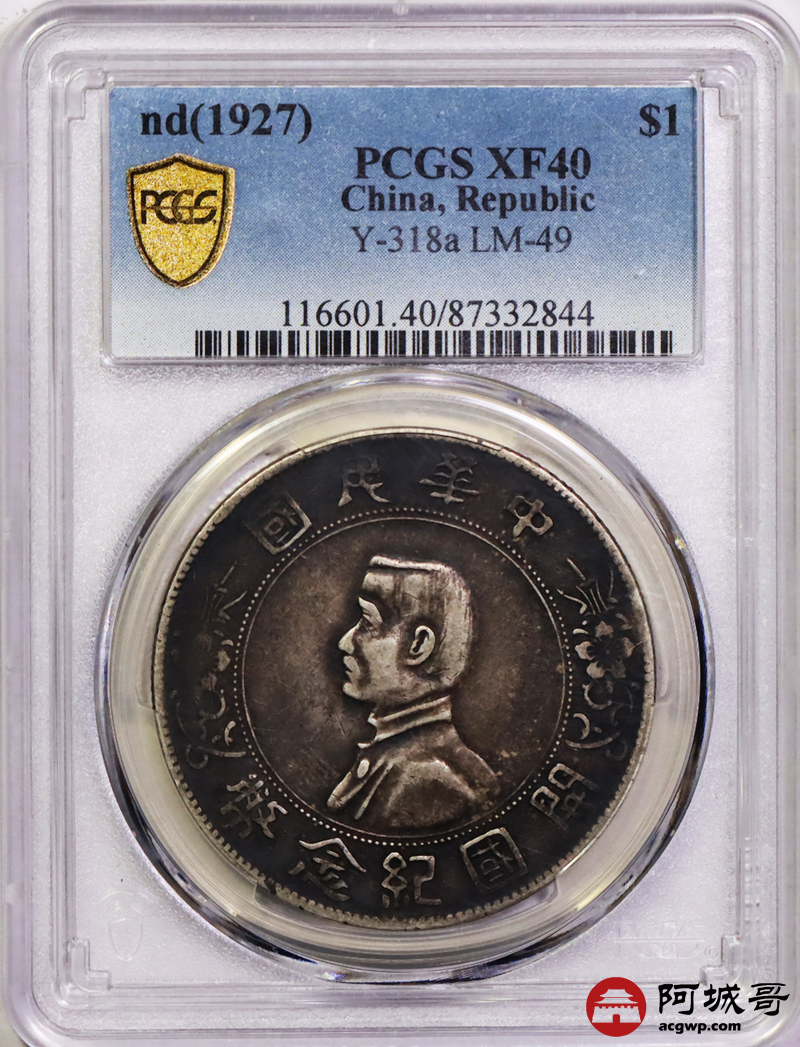 Lot:9 原味酱彩老包浆 孙像小头壹圆 PCGS XF40
