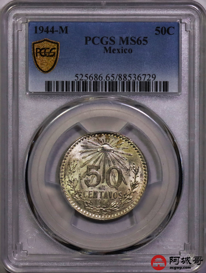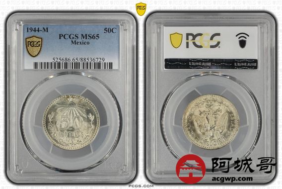 Lot:37 1944M墨西哥鹰洋50C PCGS MS65