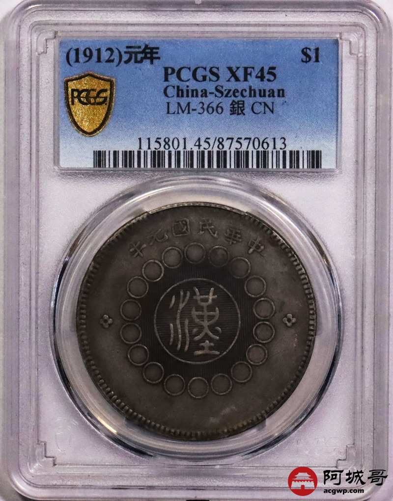 Lot:17 原味 深打 四川军政府壹圆 PCGS XF45