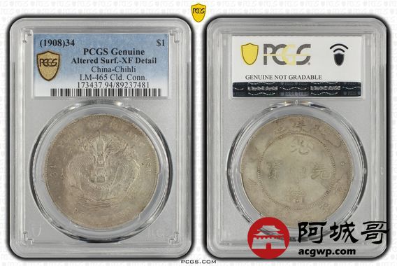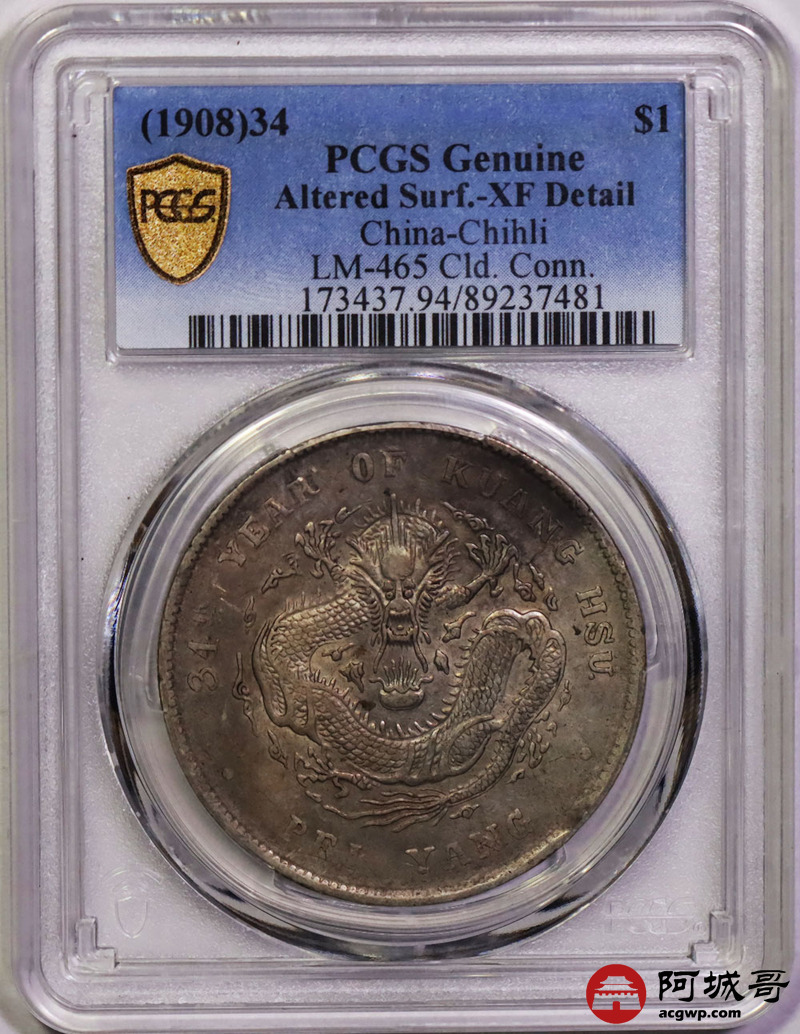 Lot:22 原味 深打 北洋34年七钱二分 PCGS XF