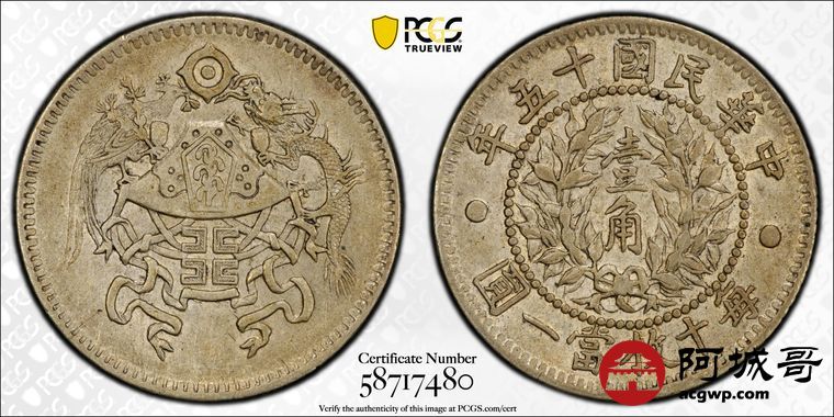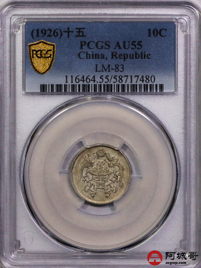 Lot:11 黄油深打 民国十五年龙凤壹角 PCGS AU55
