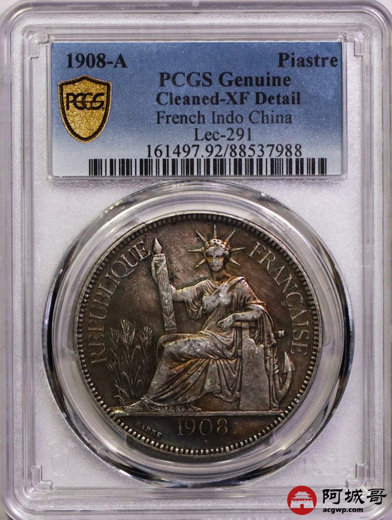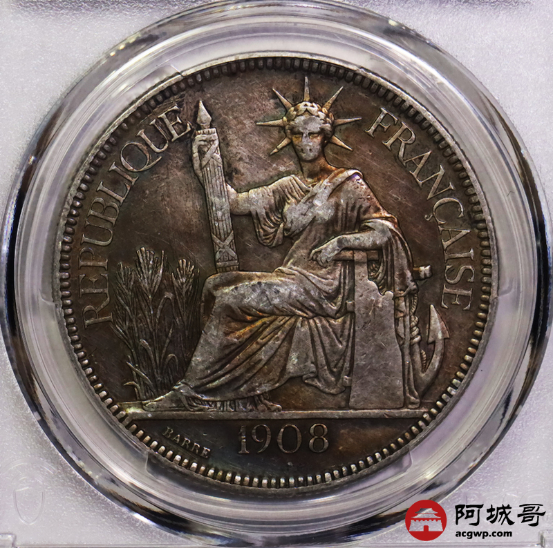 Lot:31 1908A五彩包浆 坐洋壹圆 PCGS XF