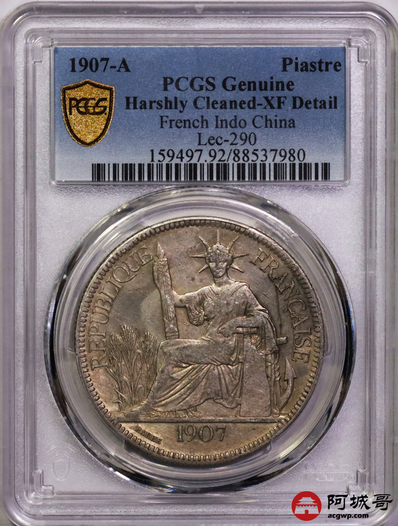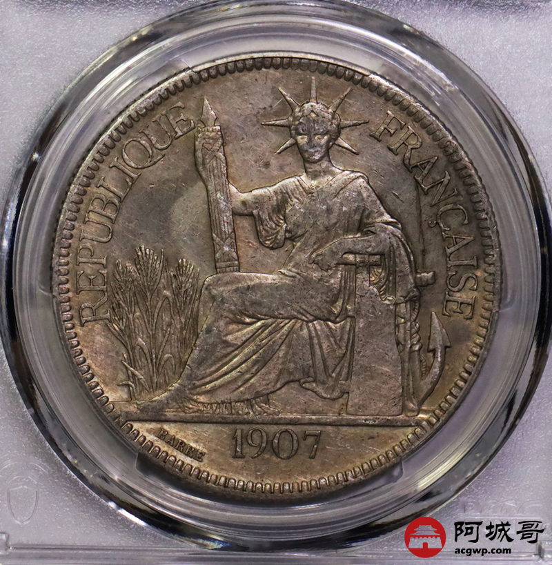 Lot:28 1907A黄油彩 坐洋壹圆 PCGS XF
