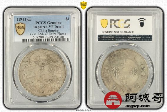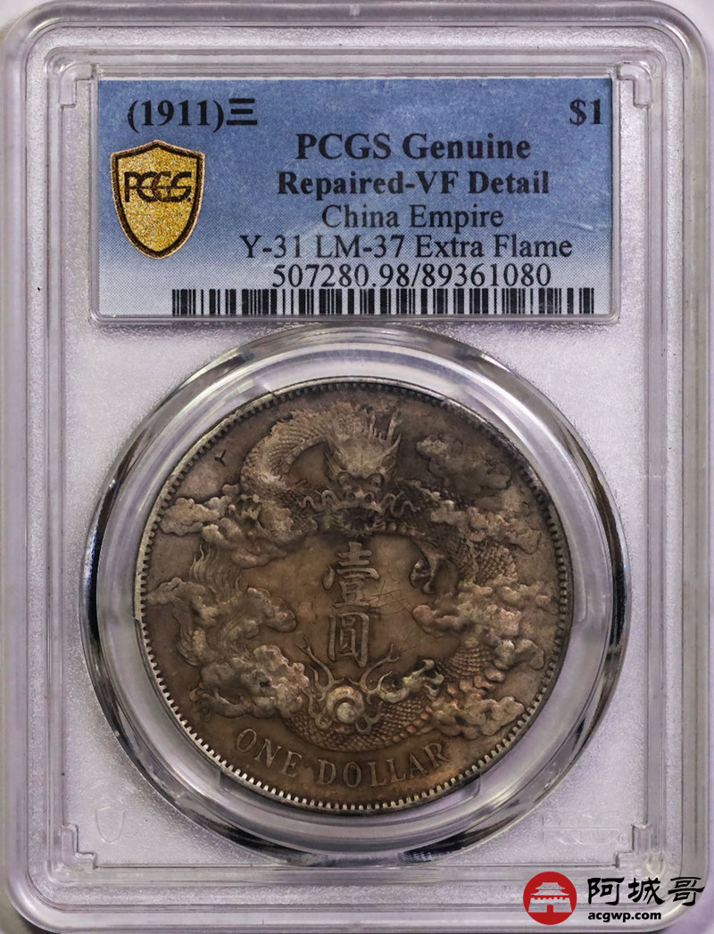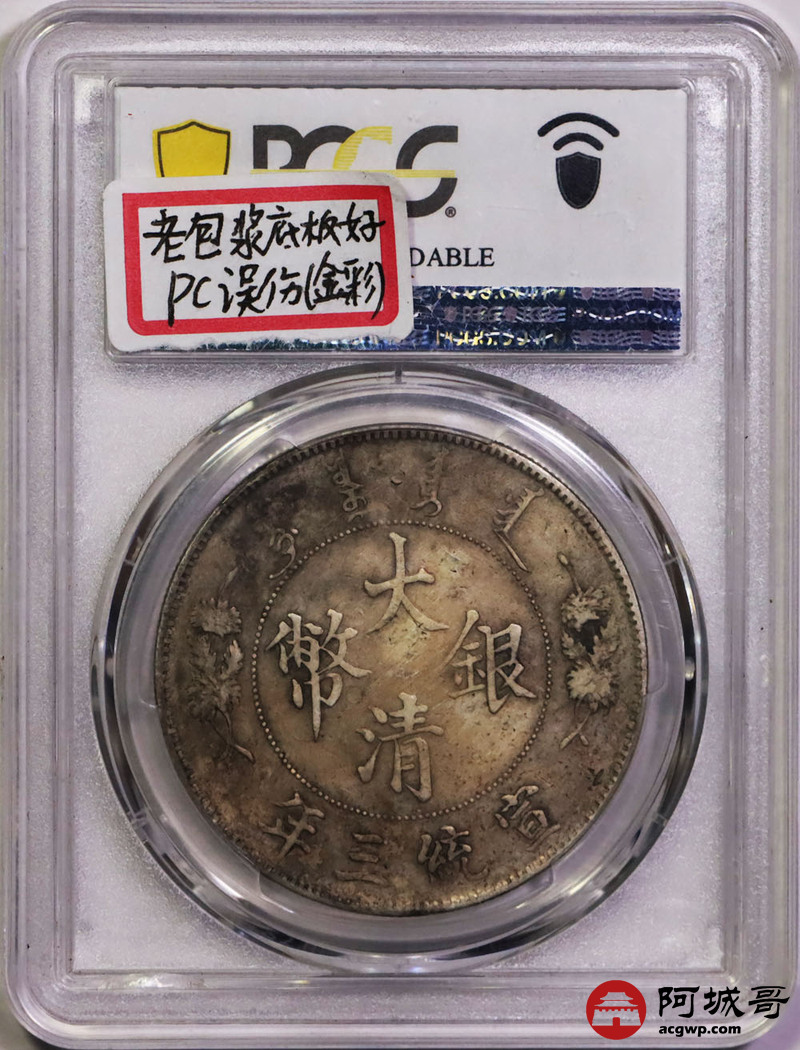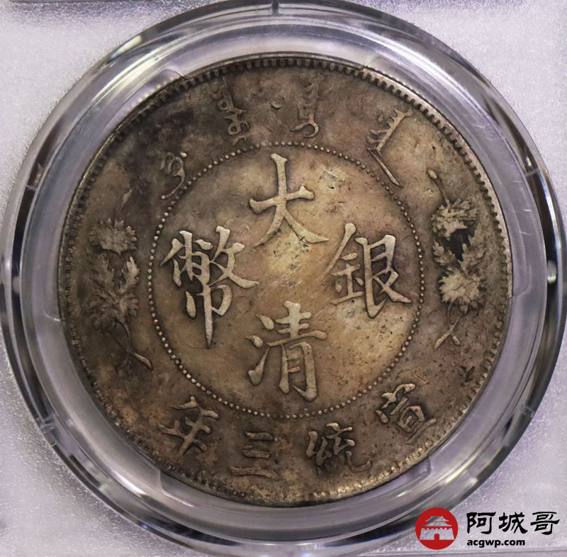 Lot:4 原味老包浆 大清宣三壹圆 PCGS VF