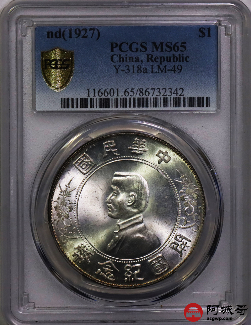 Lot:14 深打车轮转光 孙像小头壹圆 PCGS MS65