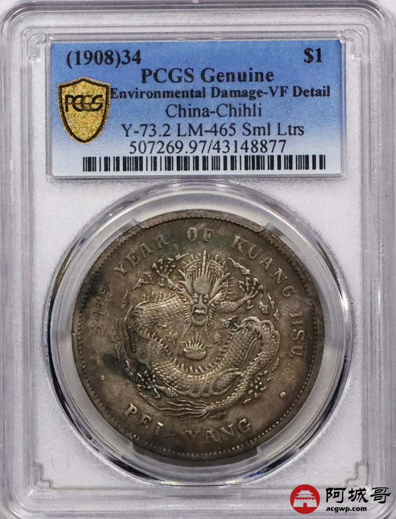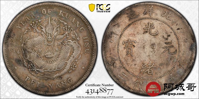 Lot:23 原味五彩底板 北洋34七钱二分 剑三远四 PCGS VF