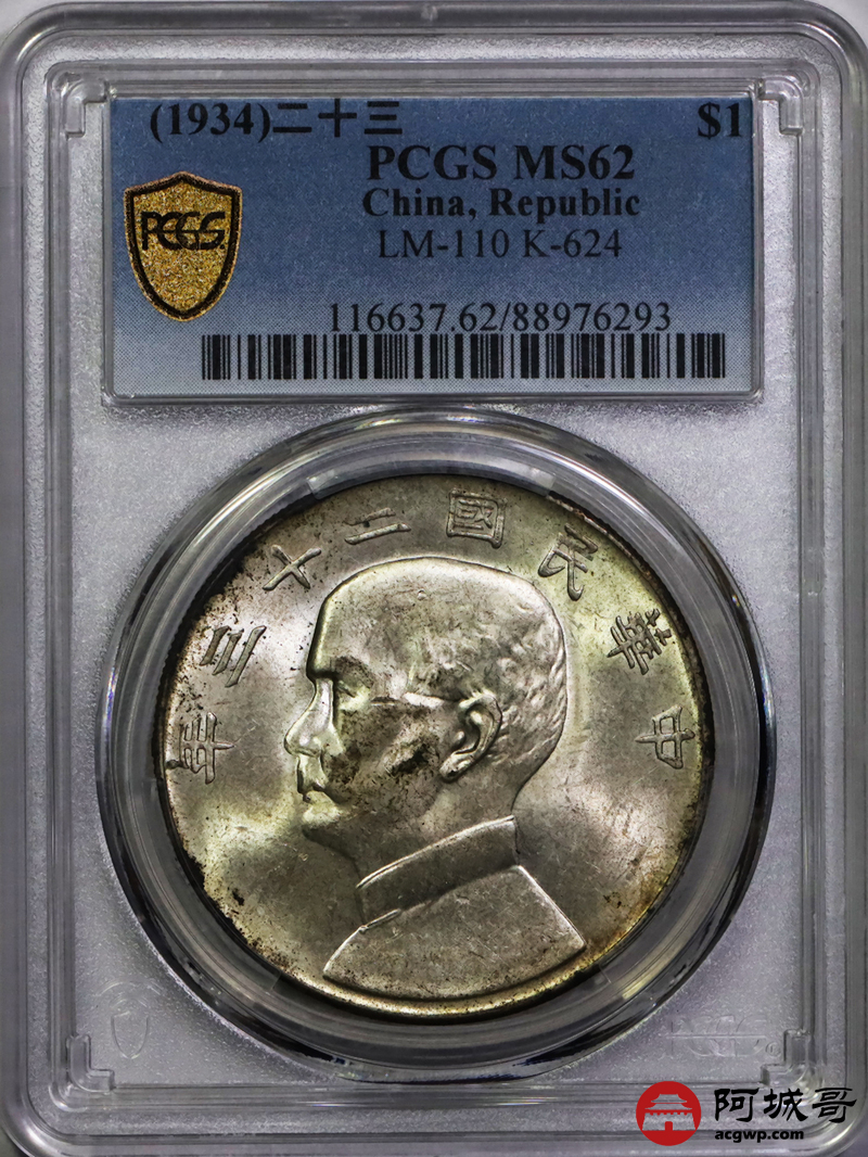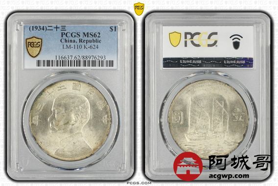 Lot:31 黄油原光 二十三年船洋 PCGS MS62