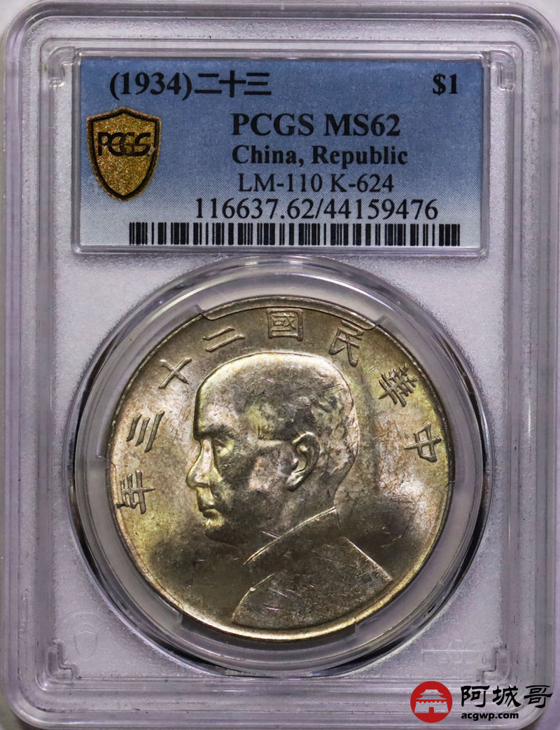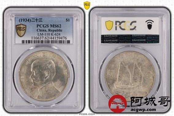 Lot:32 黄油原光 二十三年船洋 PCGS MS62