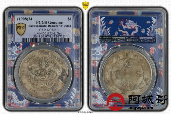 Lot:3 原味老包浆 北洋34七钱二分 开云版 PCGS VF