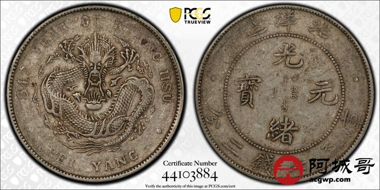 Lot:23 原味老包浆 北洋34七钱二分 PCGS XF40