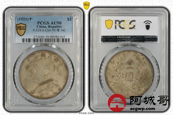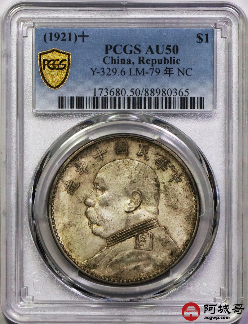 Lot:12 原味老包浆 十年大头壹圆 PCGS AU50